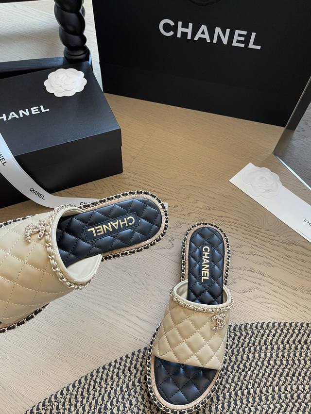 Chanel 24S春夏新款沙滩凉鞋系列 夏日度假风沙滩拖鞋系列来啦~ 跟高1.5Cm 4.5Cm 码数:35-41 40 41定制不退换 顶级版本