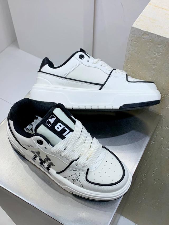 升级ts版#男女鞋真标半码制 配置原装购物袋联乘美国榄球洋基队new York Yankees X Mlb Chunky Liner Low 学长鞋系列低帮老爹风轻量增高厚底百搭休闲运动板鞋“皮革米白绿圣诞白黑ny印花”3Asxca12N