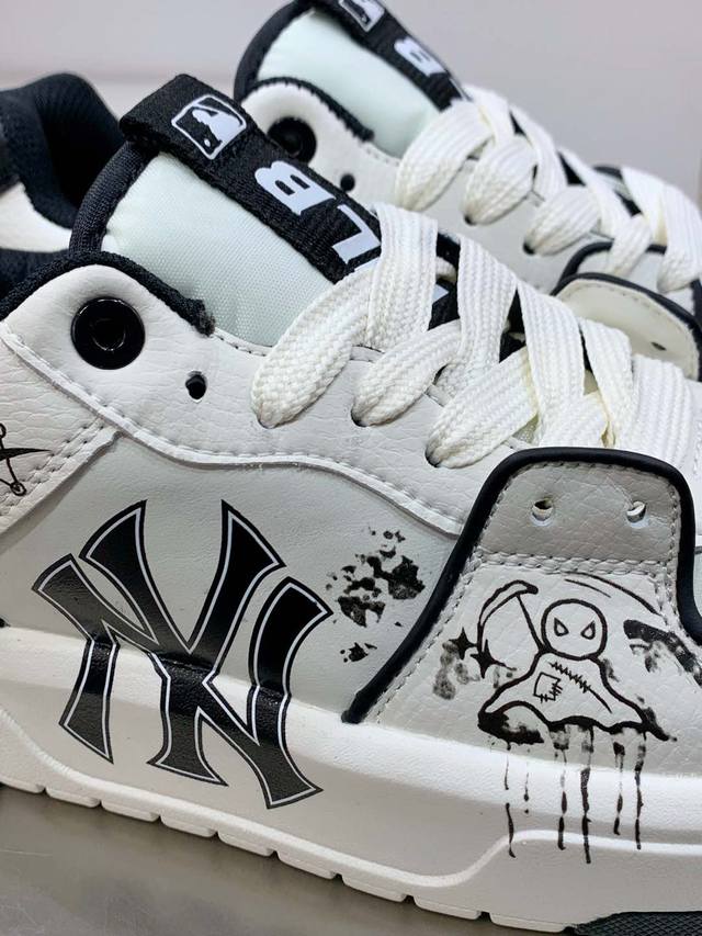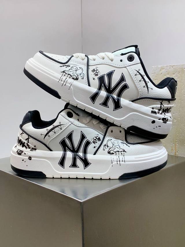 升级ts版#男女鞋真标半码制 配置原装购物袋联乘美国榄球洋基队new York Yankees X Mlb Chunky Liner Low 学长鞋系列低帮老爹风轻量增高厚底百搭休闲运动板鞋“皮革米白绿圣诞白黑ny印花”3Asxca12N