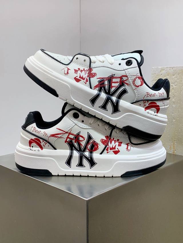 升级ts版#男女鞋真标半码制 配置原装购物袋联乘美国榄球洋基队new York Yankees X Mlb Chunky Liner Low 学长鞋系列低帮老爹风轻量增高厚底百搭休闲运动板鞋“皮革米白绿圣诞白黑ny印花”3Asxca12N