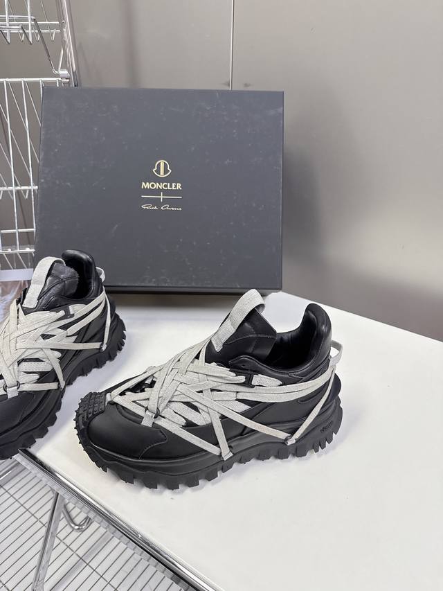 这季联名新鞋太帅啦!选用Moncler的经典户外鞋Trailgrip加上Rick Owens的标志性绑带设计和经典Dust配色。这双相比黑色更高级特别,专柜货量也更少。工艺超级复杂 鞋面小牛皮 内里牛皮 原版组合大底 超级轻不重Size:35-40 男39-45