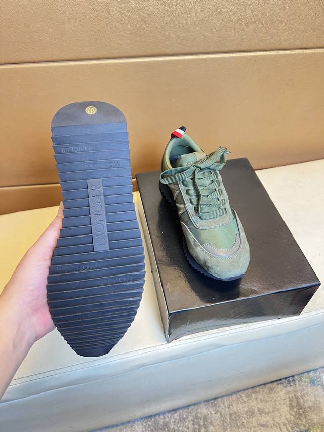 Moncler 休闲运动鞋,头层牛皮搭进口网布面料柔软舒适透气 一脚蹬设计理念合脚大气 真头层羊皮内里透气...