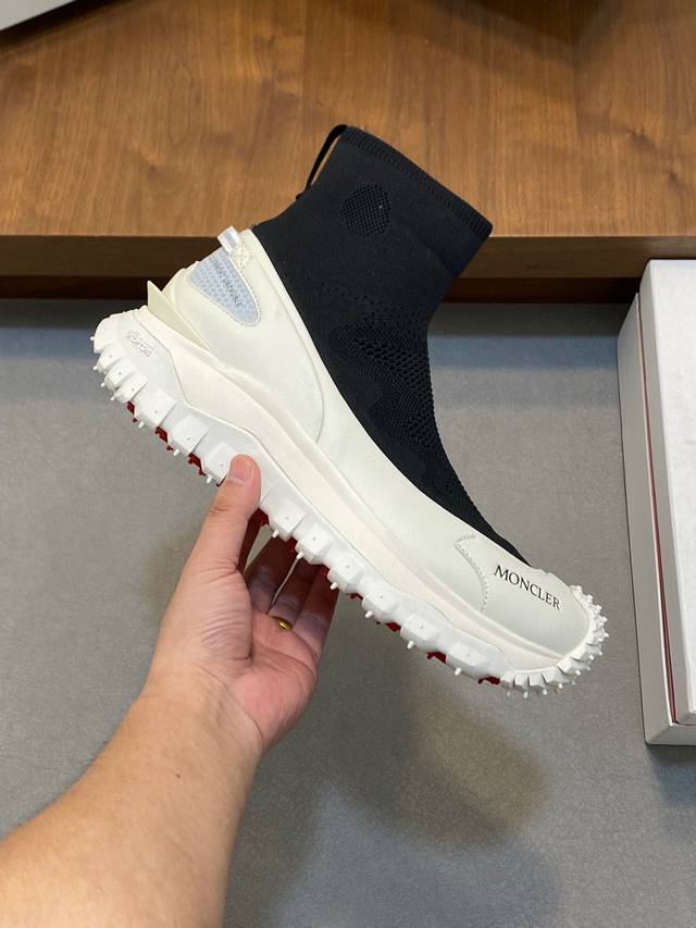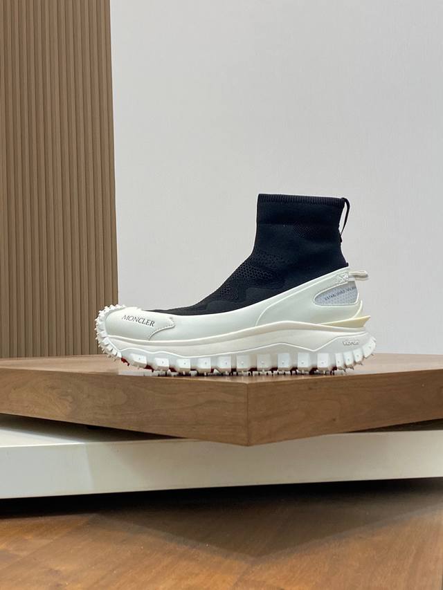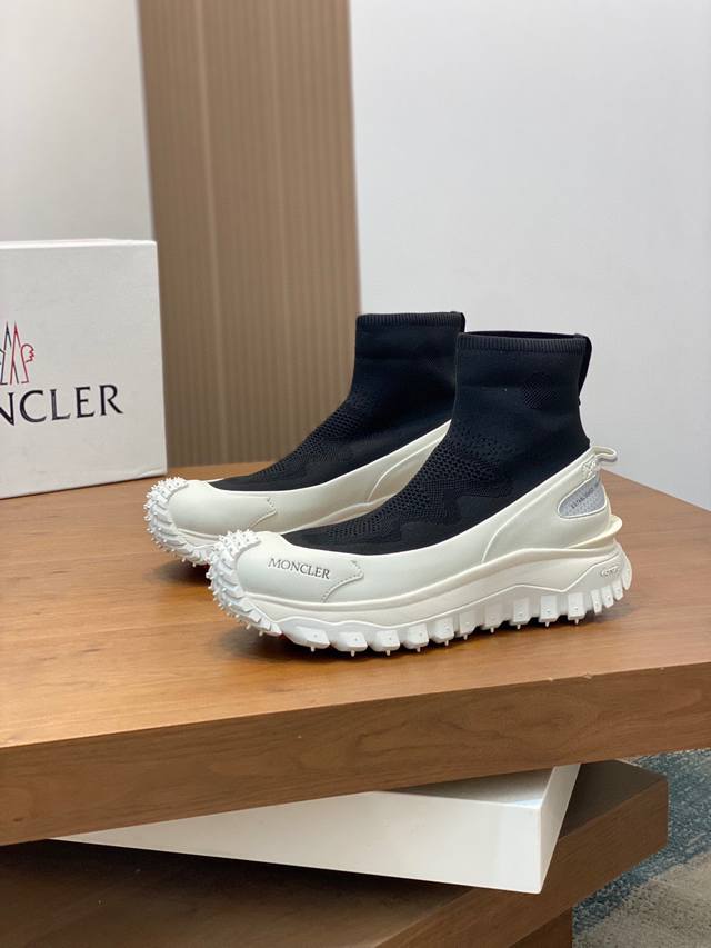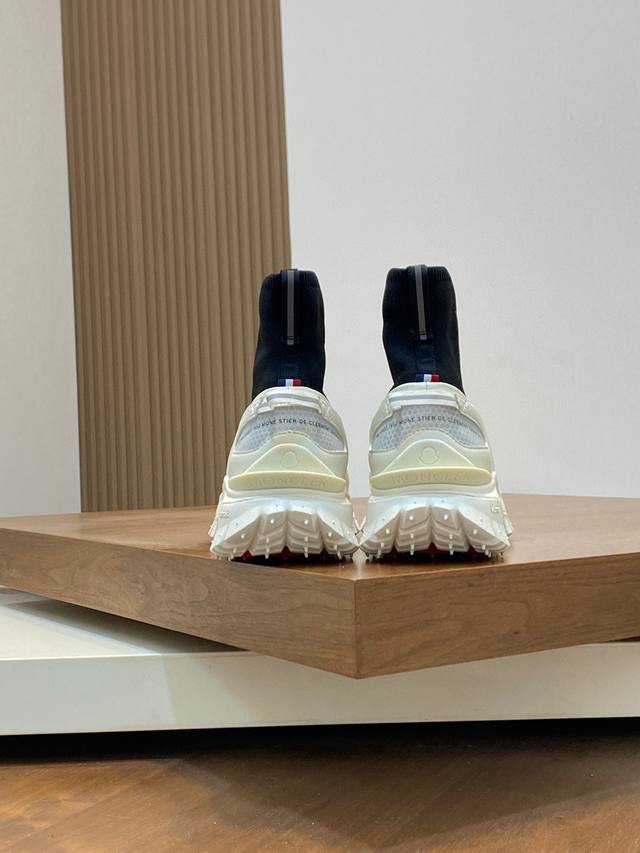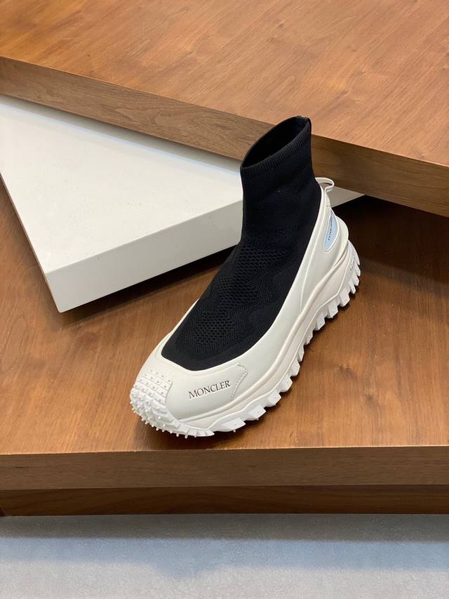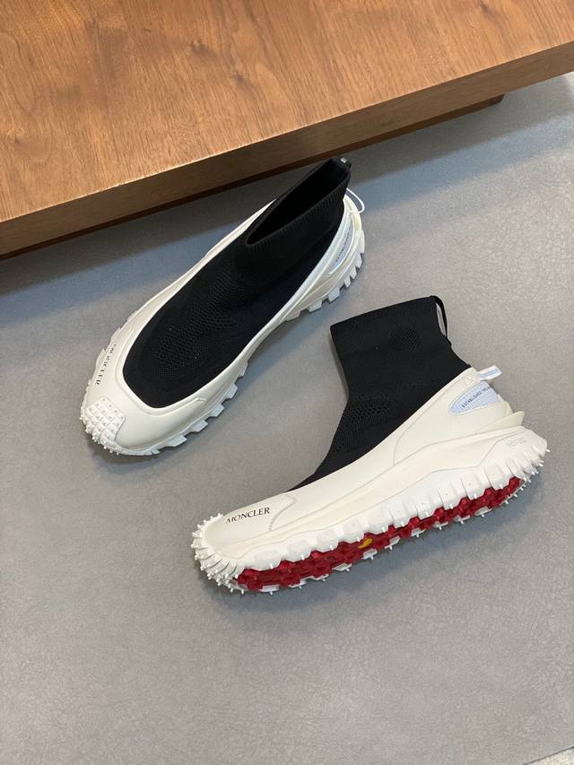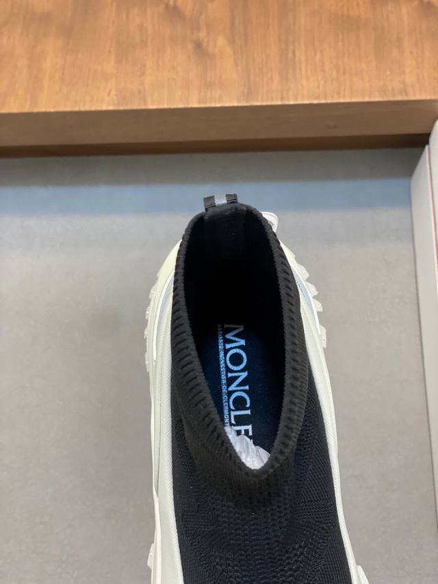 / moncler 蒙口情侣袜子休闲鞋,具有舒适防滑性能,采用科技面料制成。兼备创新、功能性与图形细节于一体,从高山氛围汲取灵感,诠释潮流时尚。蜂窝网布,氯丁橡胶