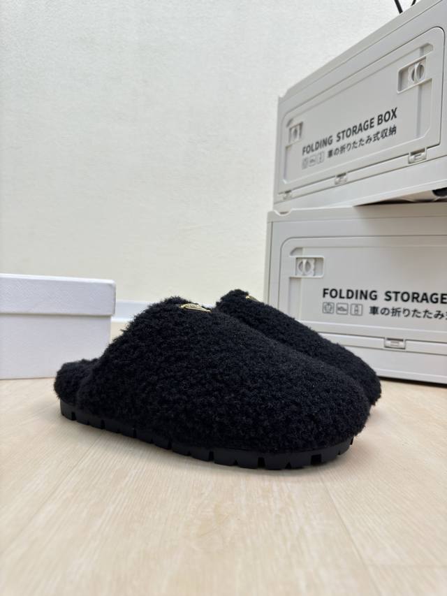 三角扣 毛拖 羊毛里 毛毛拖prada