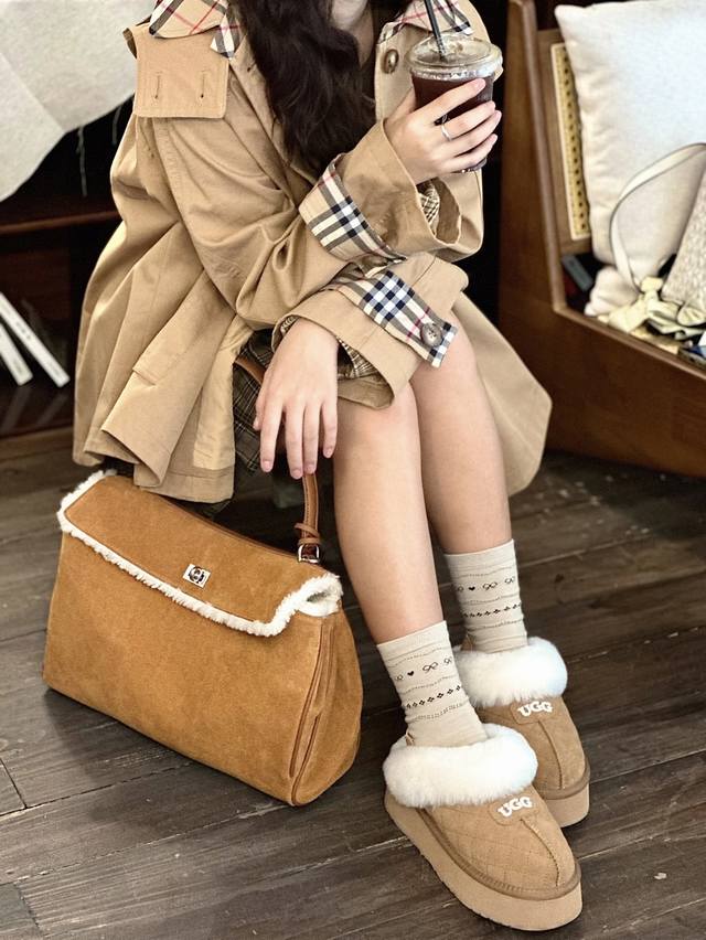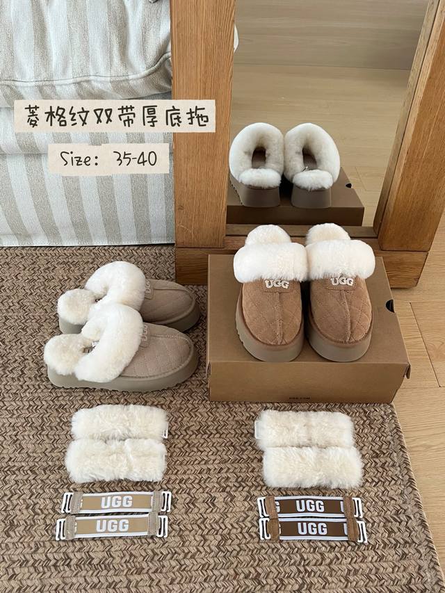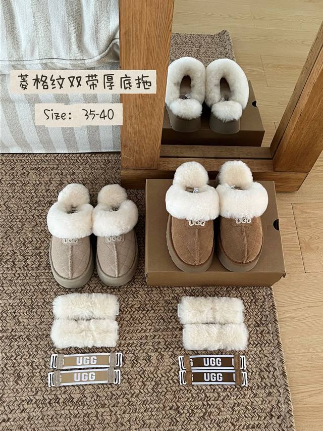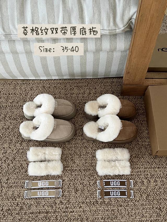 Ugg这款菱格纹双带厚底拖直接戳中我的心巴