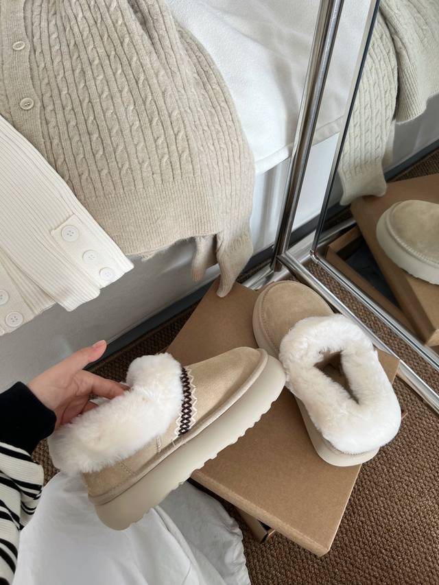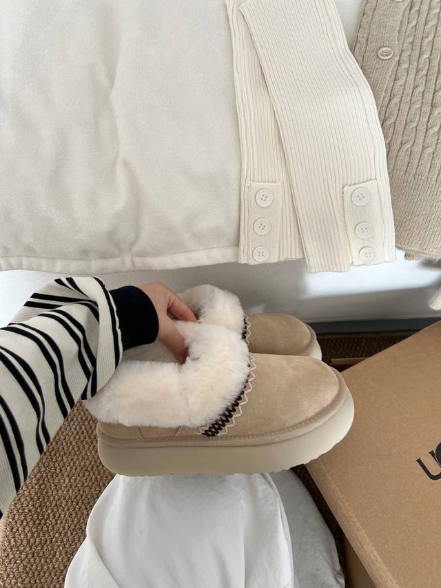 上新Ugg毛毛拖|民族风编织+可踩后跟 秋冬懒人穿搭的快乐密码 谁能拒绝这双能踩后跟的Ugg毛毛拖啊! 民族风编织细节,自带复古氛围感,和“大喜庆”风格适配度拉
