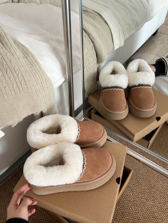 毛绒绒的领口暖Fufu,厚底还显高,搭配堆堆袜、阔腿裤,秋冬懒人穿搭直接封神~