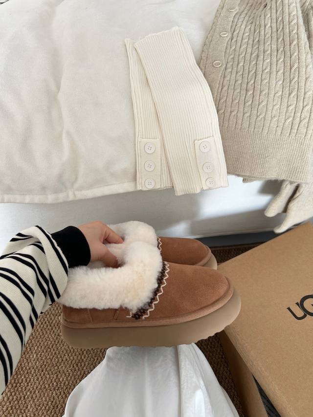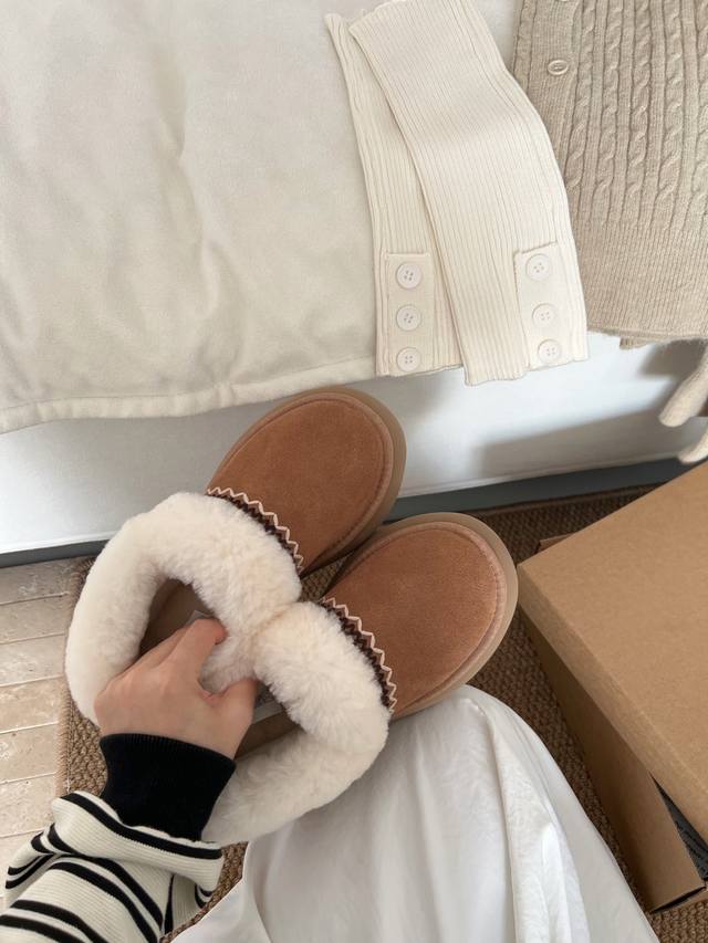 上新Ugg毛毛拖|民族风编织+可踩后跟 秋冬懒人穿搭的快乐密码 谁能拒绝这双能踩后跟的Ugg毛毛拖啊! 民族风编织细节,自带复古氛围感,和“大喜庆”风格适配度拉