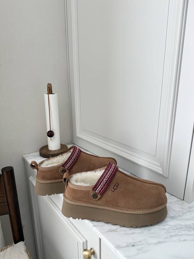 上新Ugg 织带两穿民族风拖鞋 羊毛保暖舒适柔软 冬季百搭款、3Cm增高鞋底 多色可选 谁能拒绝这么好看的鞋子呀 三色,码数35-41码!
