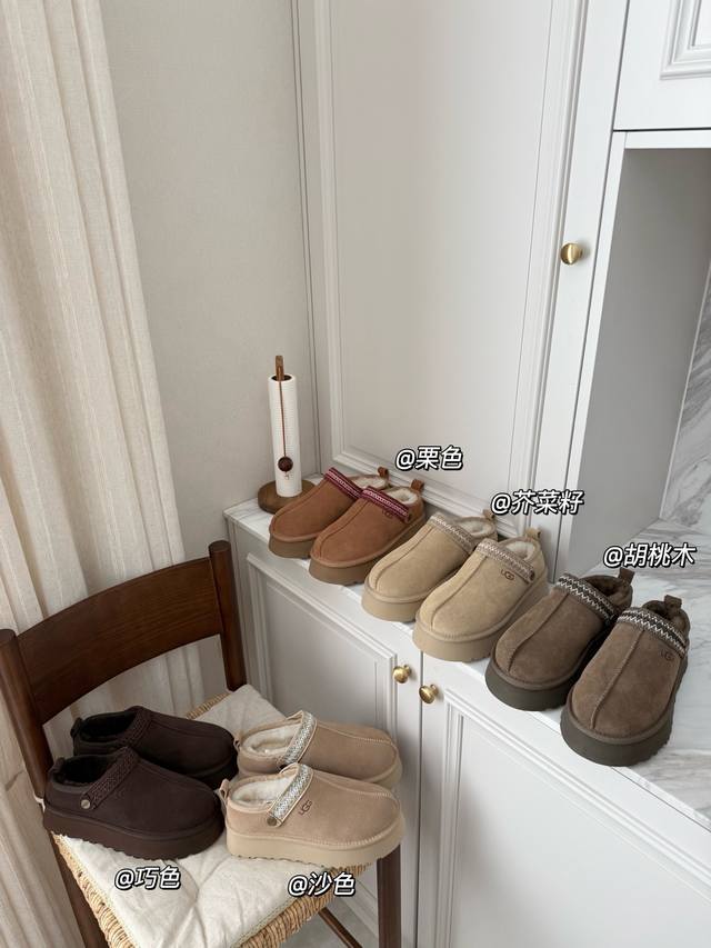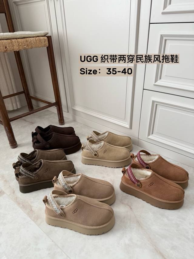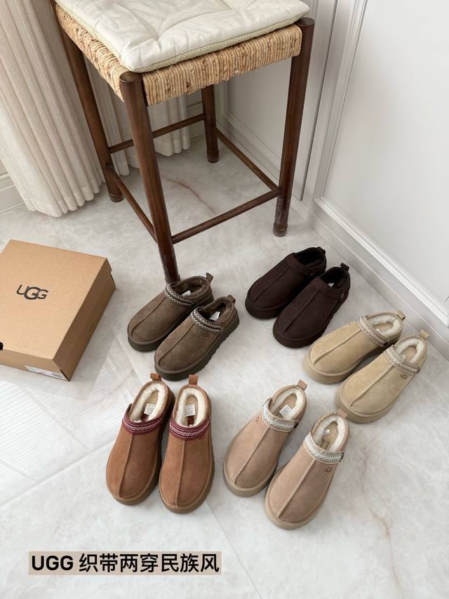上新Ugg 织带两穿民族风拖鞋 羊毛保暖舒适柔软 冬季百搭款、3Cm增高鞋底 多色可选 谁能拒绝这么好看的鞋子呀 三色,码数35-41码!