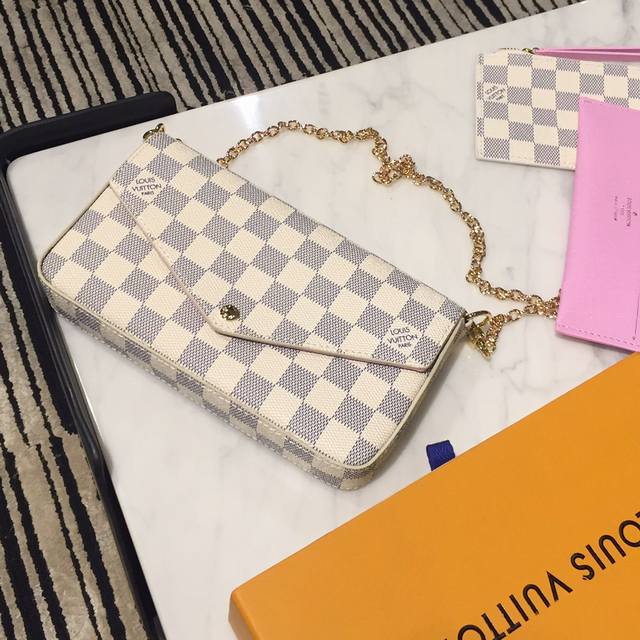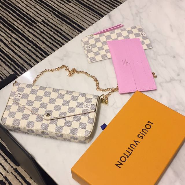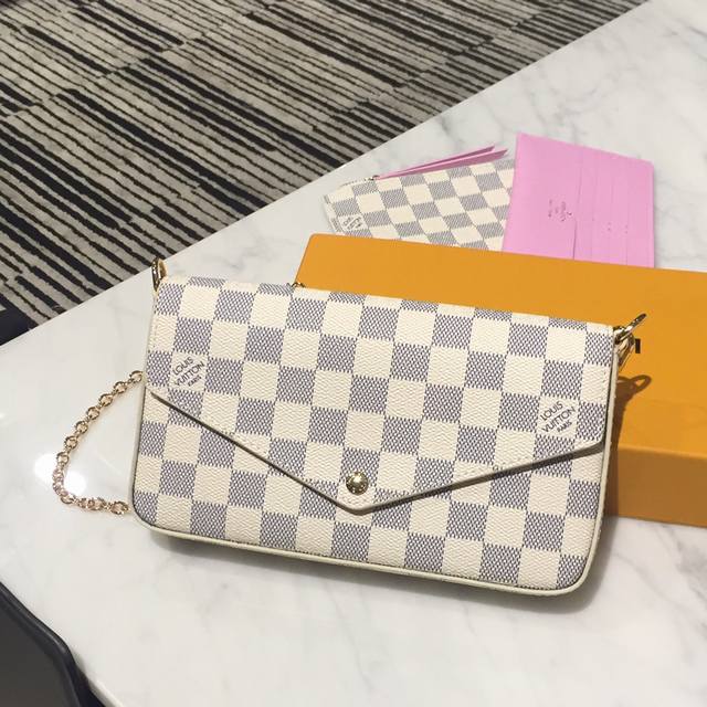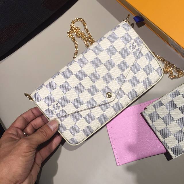 中秋钜献全新包装未拆封 ,经典链条包三件套,两个小卡包+金色小链条 白棋盘三件套