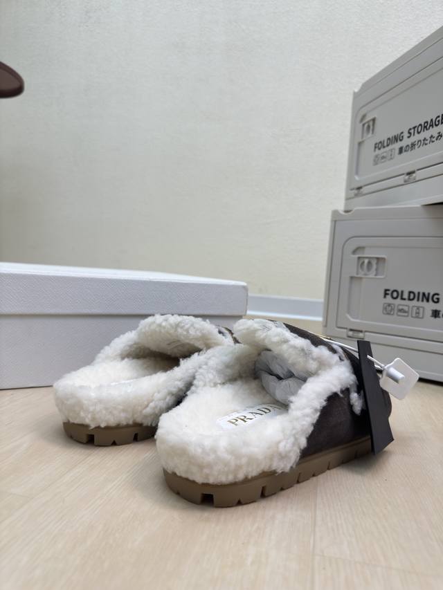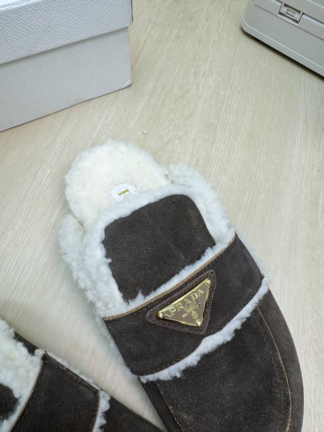 乐福鞋毛拖 羊毛里 毛毛拖prada