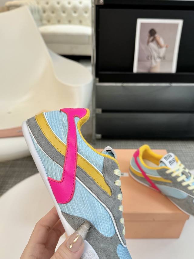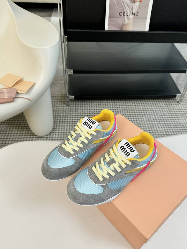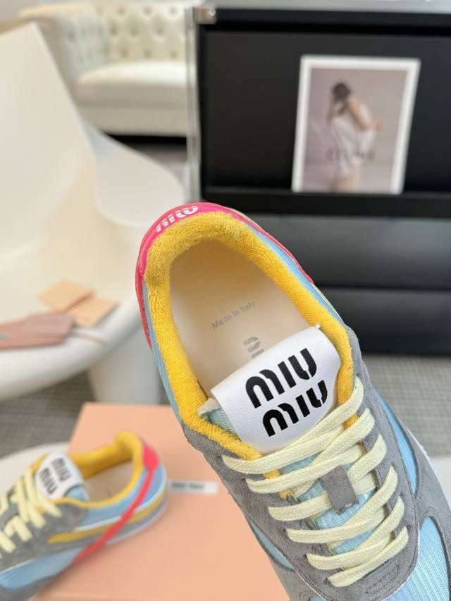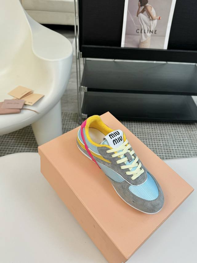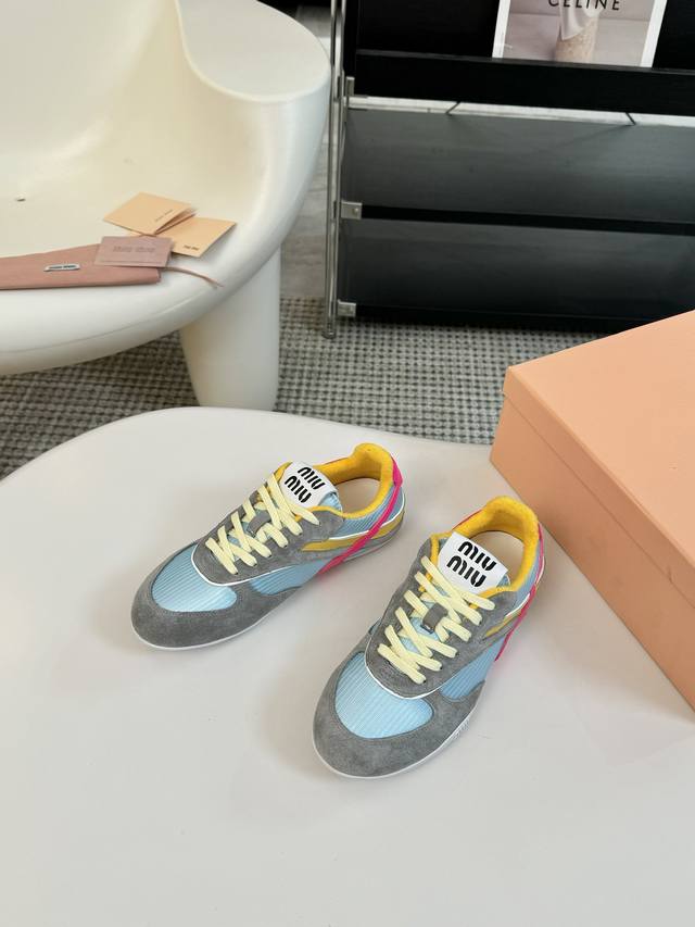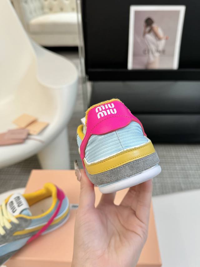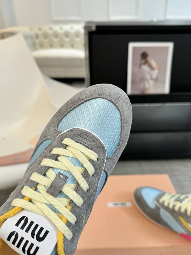 代购级别独家首发miumiu缪缪透气网布休闲鞋2025春夏新款英伦风系带miumiu秀场工艺来自miu Miu系列的细节特写 新季的潮流要素一 与此刻挚爱的概念