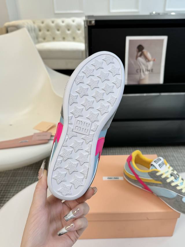 代购级别独家首发miumiu缪缪透气网布休闲鞋2025春夏新款英伦风系带miumiu秀场工艺来自miu Miu系列的细节特写 新季的潮流要素一