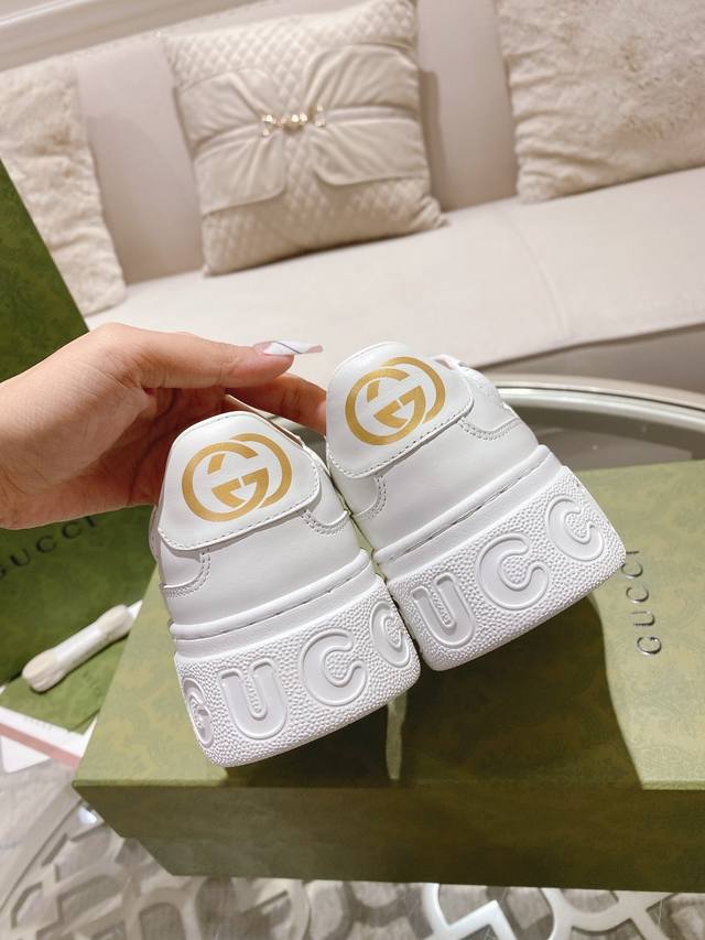 Gg最新ip轻质厚底小白鞋上脚秒内增高4Cm!! 简约 好搭且复古韵味十足~鞋舌最新防伪布标。且带电子芯片防伪。 鞋面采用进口环保水染小牛皮,+牛皮内里!+牛皮挂皮成型乳胶鞋垫。原版ip轻质大底,一体射出成型超舒服有弹力,不要拿市面上普通tr大底来比价格,比舒适度。不是一个档次。不是一个级别!