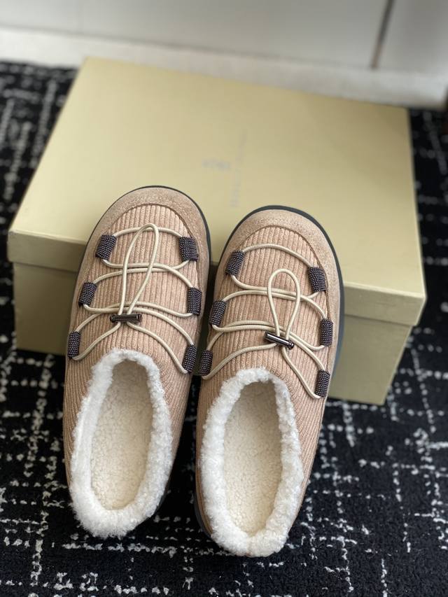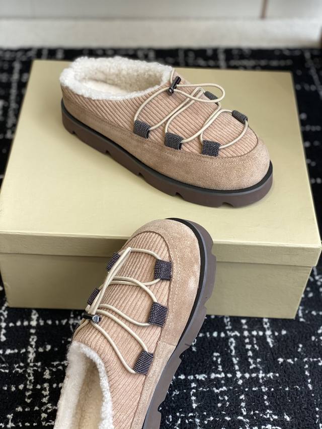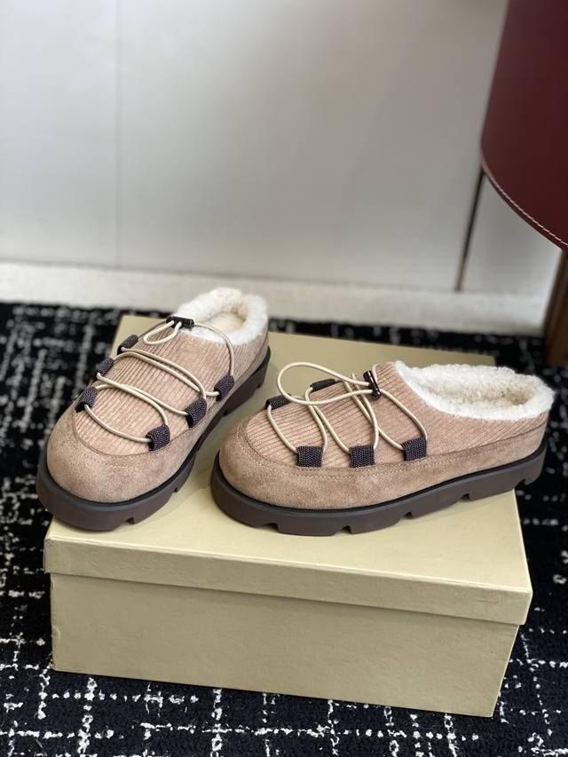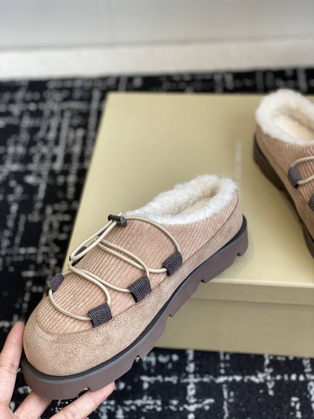 Brunello Cucinelli 25Ss 冬季新款 雪地靴 羊羔毛包子半拖