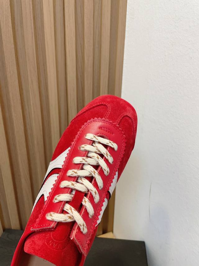 新一季的麂皮运动鞋,灵感来源于70年代的马拉松竞技运动。鞋型以马拉松运动鞋为设计原型,搭配极具生命力色彩的绿色、红色、橙色等 Dvn代表性的色彩,鞋面由麂皮、柔软牛皮等材质拼接而成,并搭配今年流行的尼龙扭绳鞋带,实用性与时尚性得到完美的平衡!