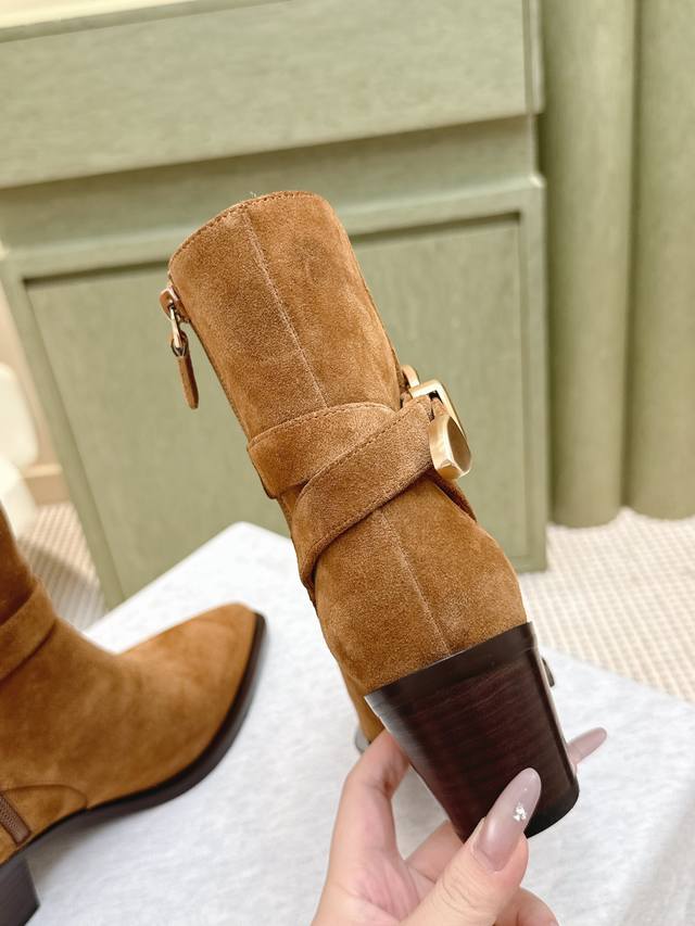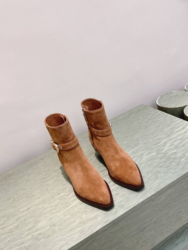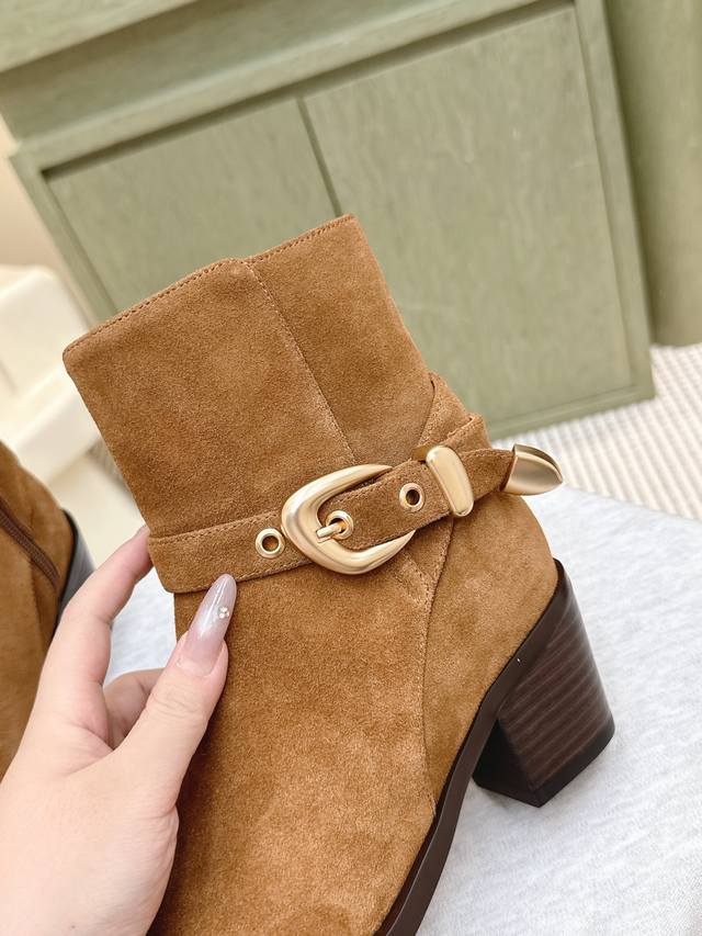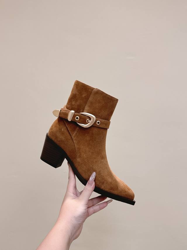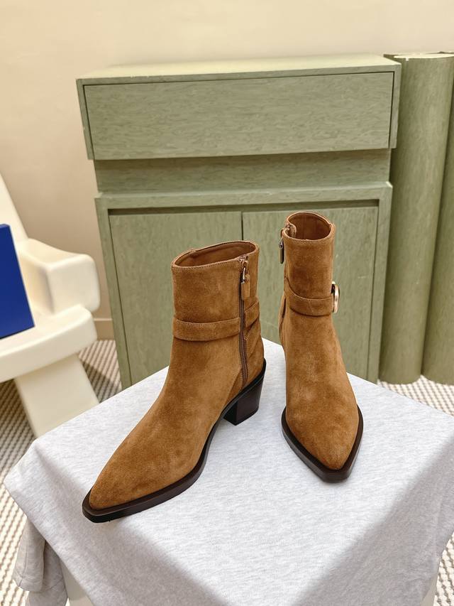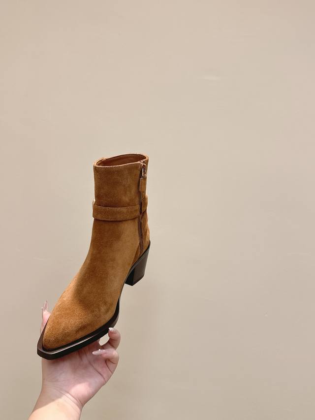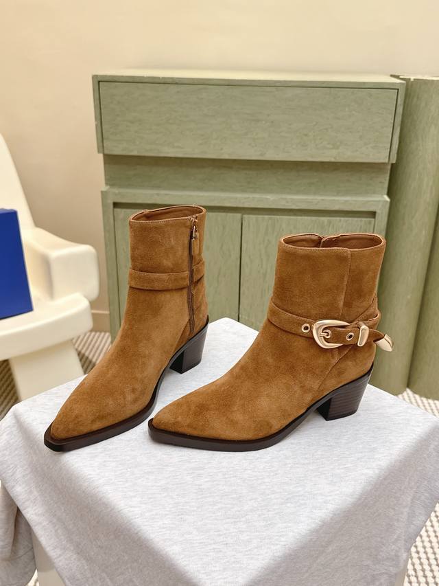 代购级牛反绒490 小牛皮 |D0751Stuartweitzman Fw 25New Arrival~杨紫大姐姐同款 尖头 高跟短靴 Sw新款厚底马丁靴百搭实
