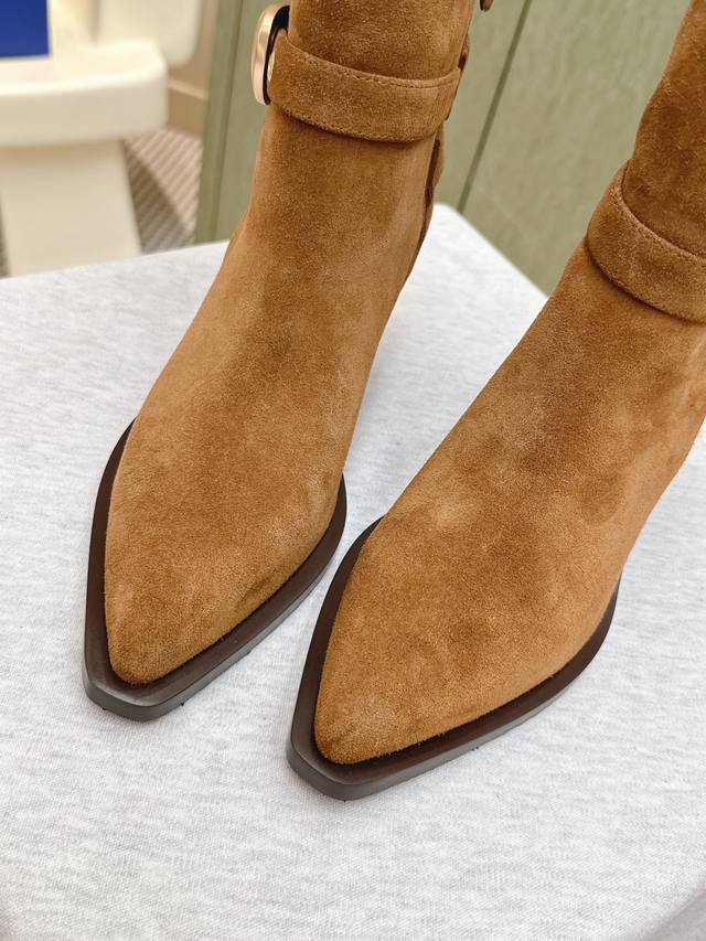 代购级牛反绒490 小牛皮 |D0751Stuartweitzman Fw 25New Arrival~杨紫大姐姐同款 尖头 高跟短靴