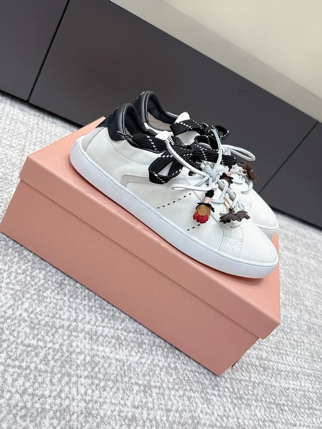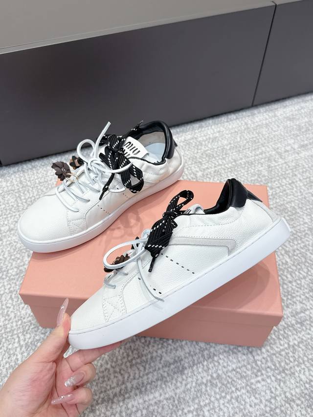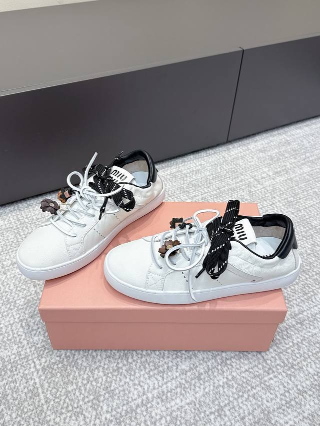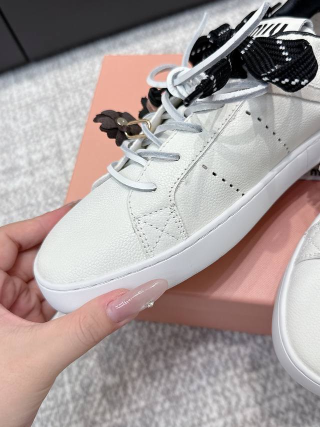 / 代购级 缪缪新款英伦风系带小白鞋 休闲鞋 新季的潮流要素一 此刻挚爱的概念,多元对撞,传达现代风格~ 怎么穿都好看 时髦精最爱 上脚超级舒服 牛皮材质 羊皮内里
