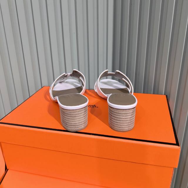 上新H家新款浅玫瑰粉Epsom手掌纹牛皮平底H型Oran拖鞋 Herme* .新色系列超前新款:陶瓷粉! 新色的鞋垫没有采用以往的拼接设计,反而是直接用绵羊皮包