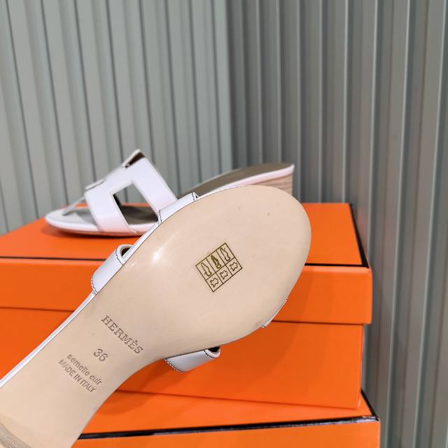上新H家新款H型牛油果绿手掌纹牛皮Oran平底拖鞋 Herme* 24.Pre Fall系列,超前新色,官网同步! 新色的鞋垫没有采用以往的拼接设计,反而是直接