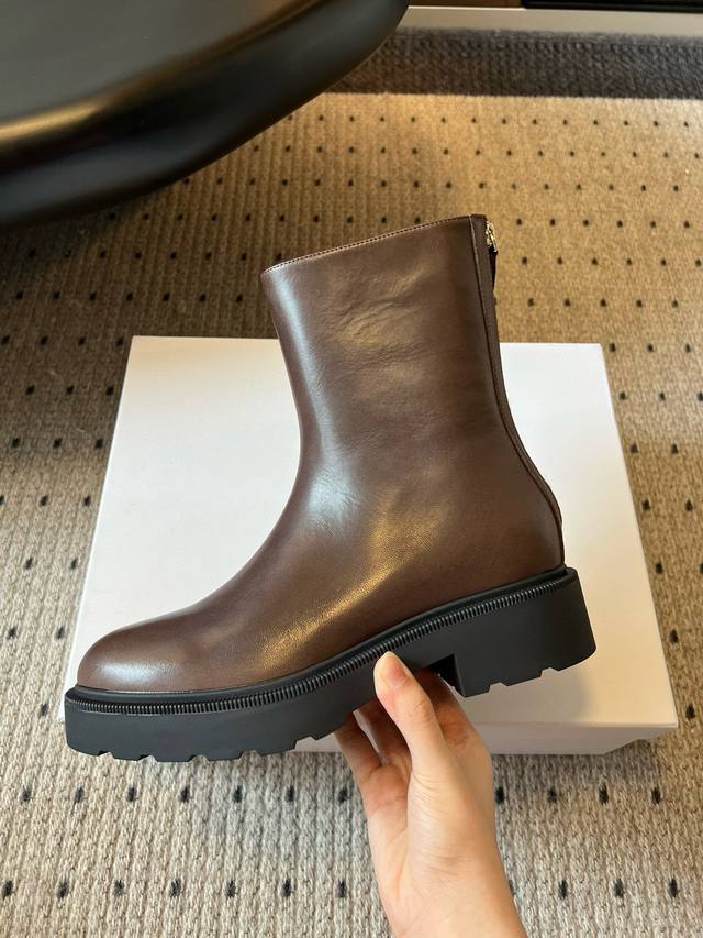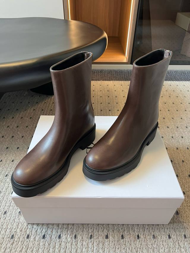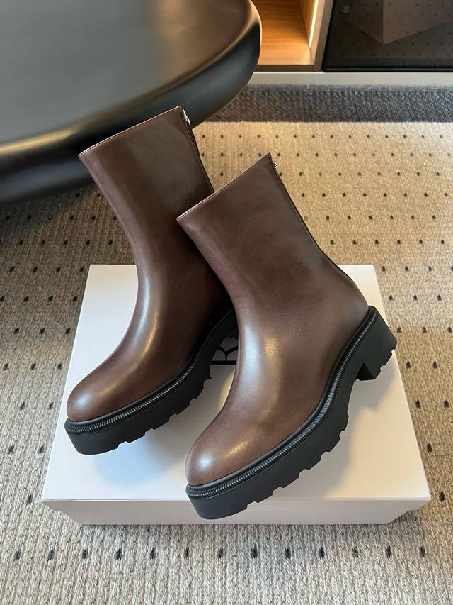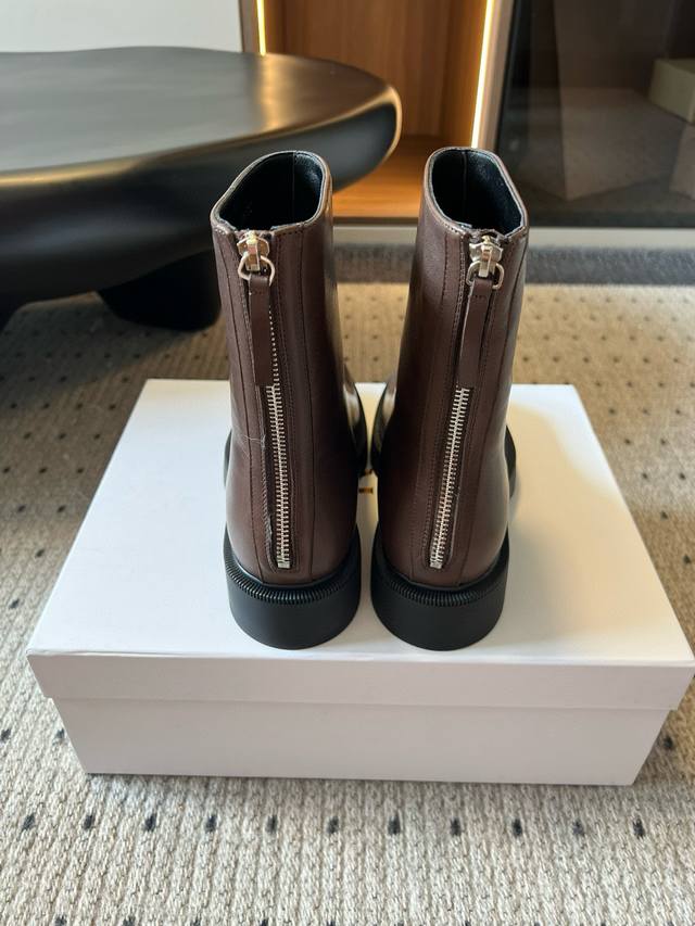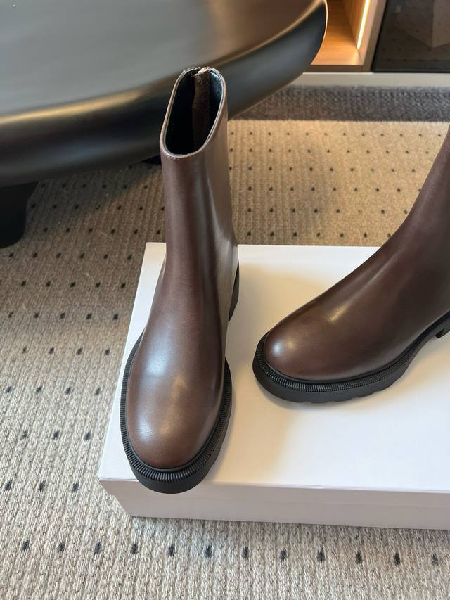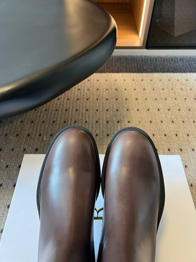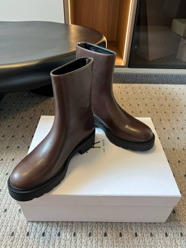 代购级 莞厂高品质The Row真皮法式复古方头极简百搭平底厚底切尔西短靴脚