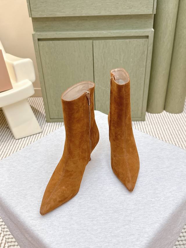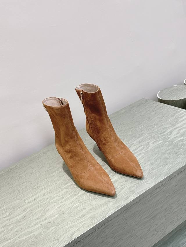 轻松移动,羊尖头短靴 素面设计,简单大方。时尚亮点!