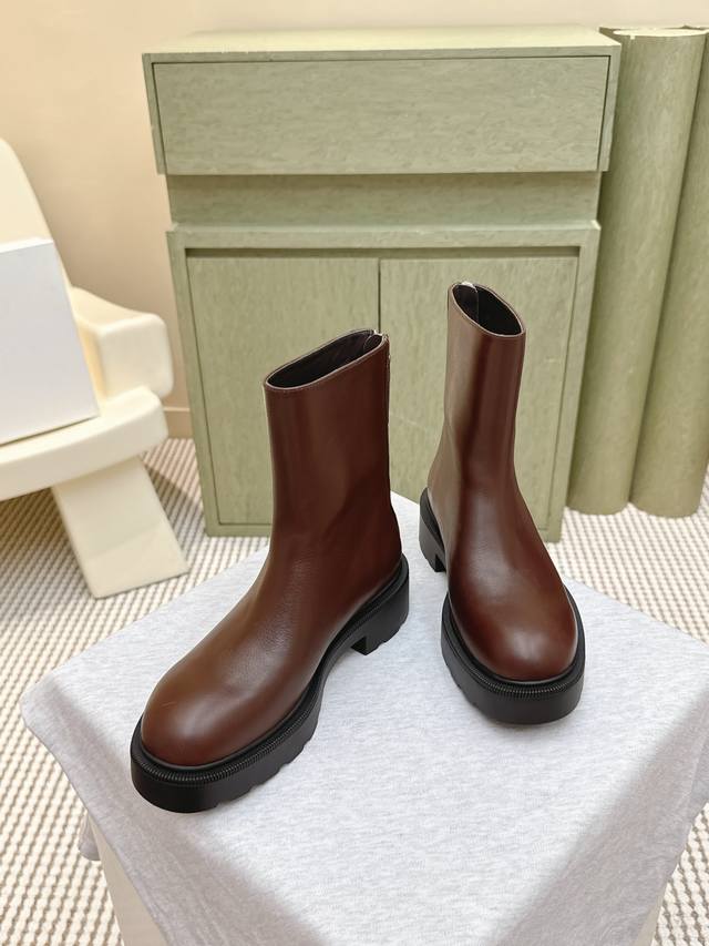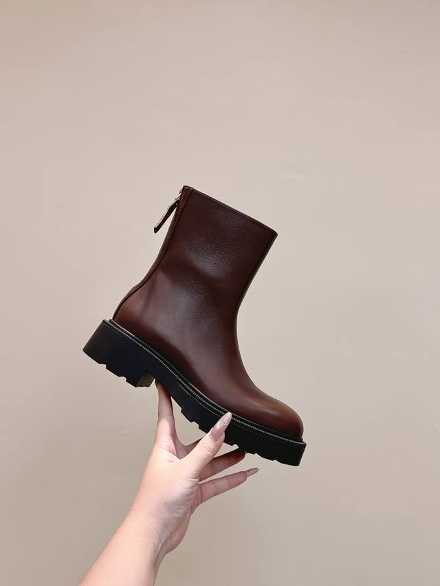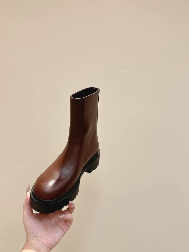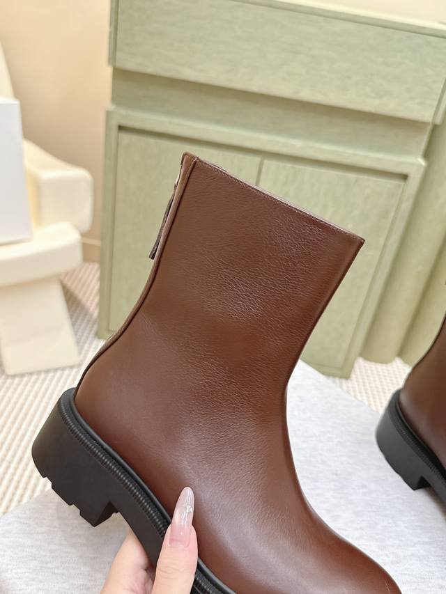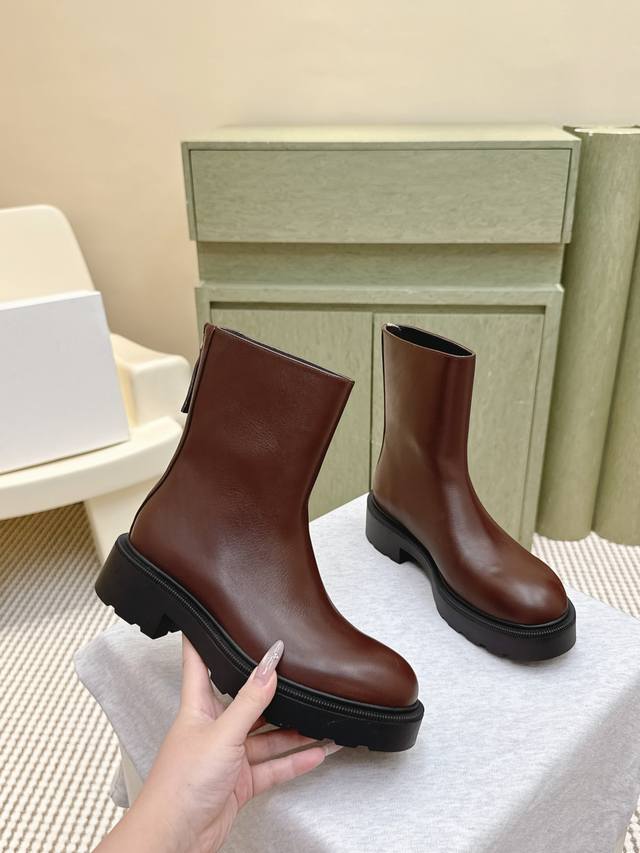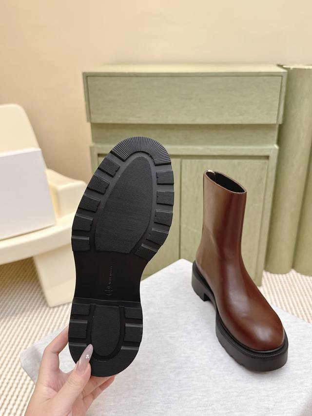代购级 |D0668The Row真皮法式复古方头极简百搭平底厚底切尔西短靴脚真的是史上我穿过最最舒服的款式太柔软啦!