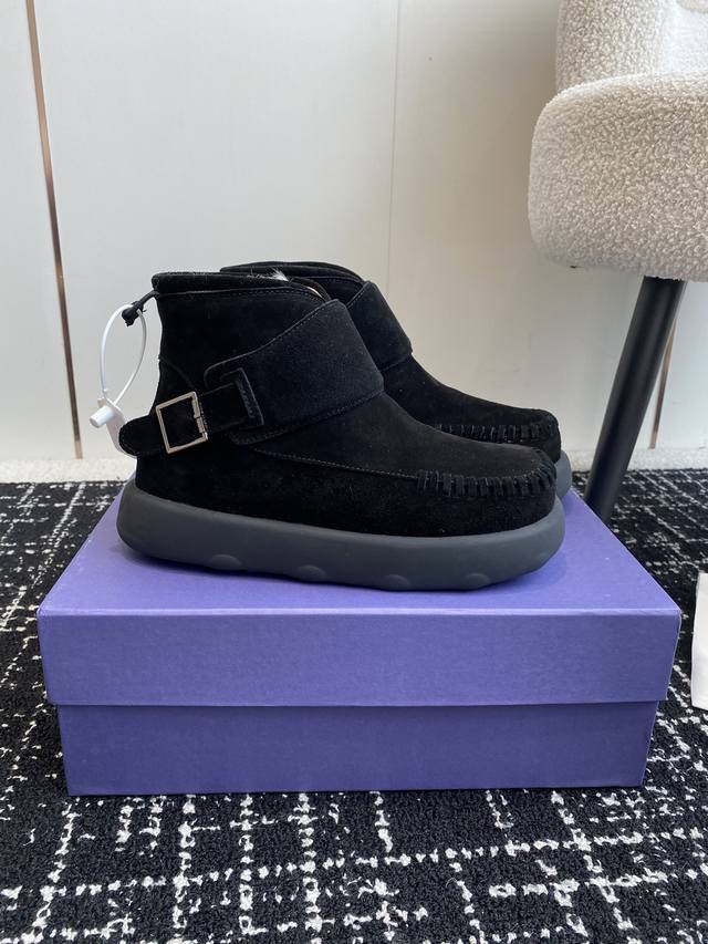 让双脚陷入暖暖的舒适圈;高丝光牛反绒作为鞋面,主理颜值门面,任何场合亦不减时髦感