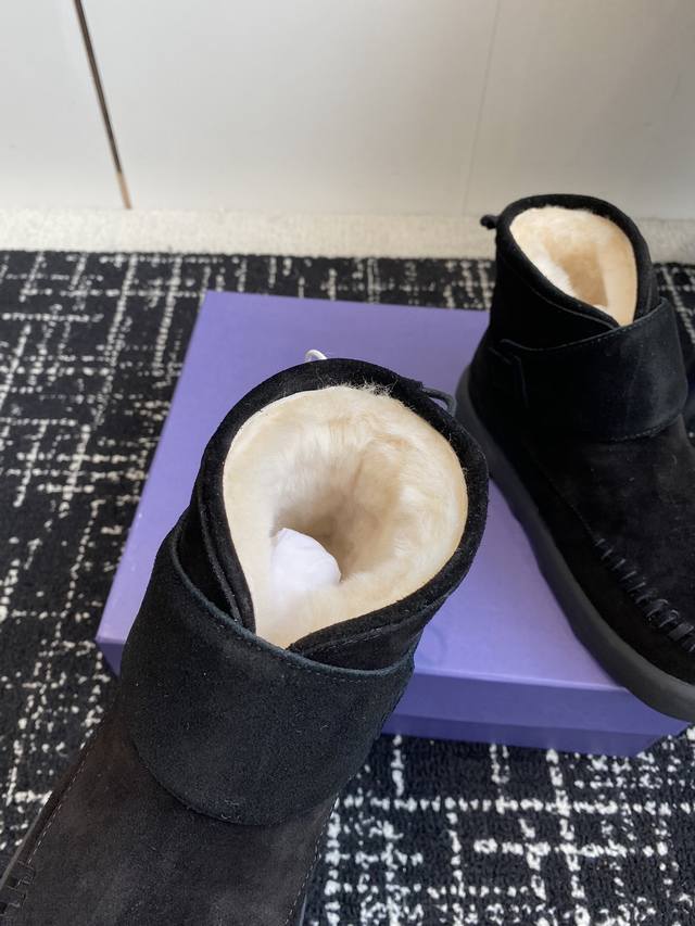 鞋型不同于市面上的臃肿雪地靴,这款消解臃肿感 瘦腿模式一秒开启;增高厚底