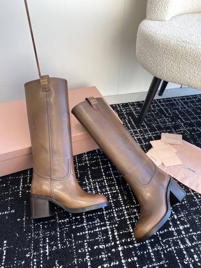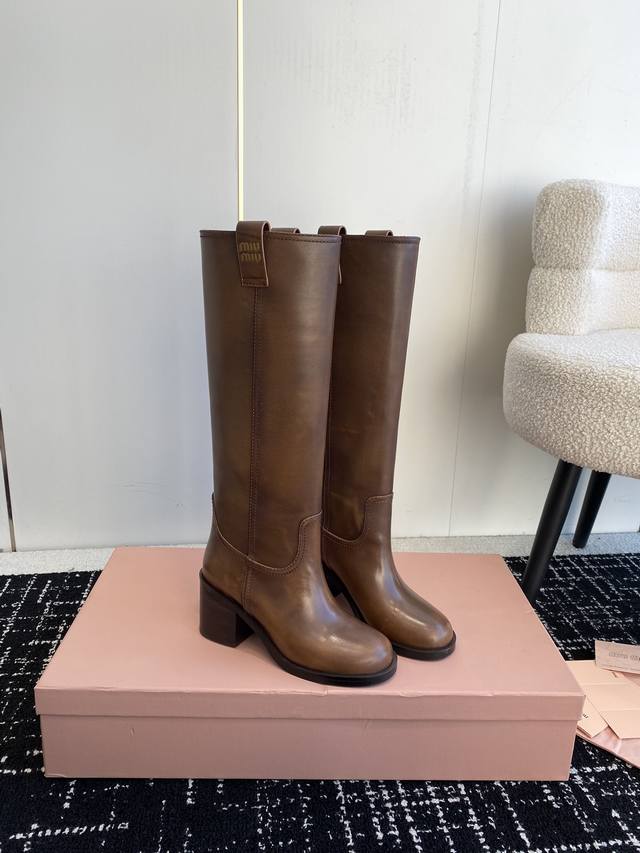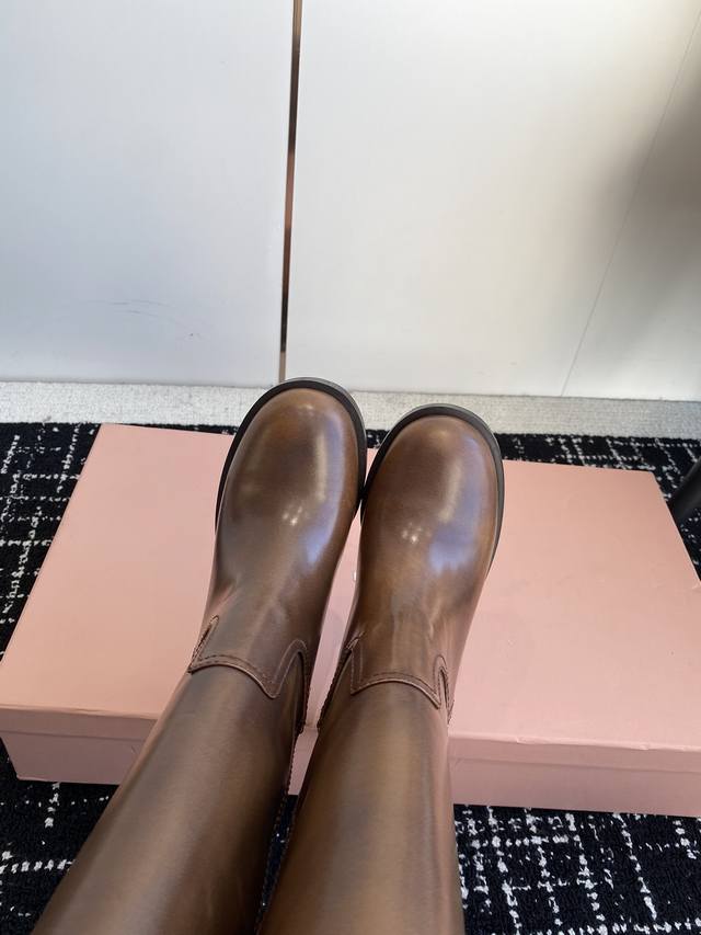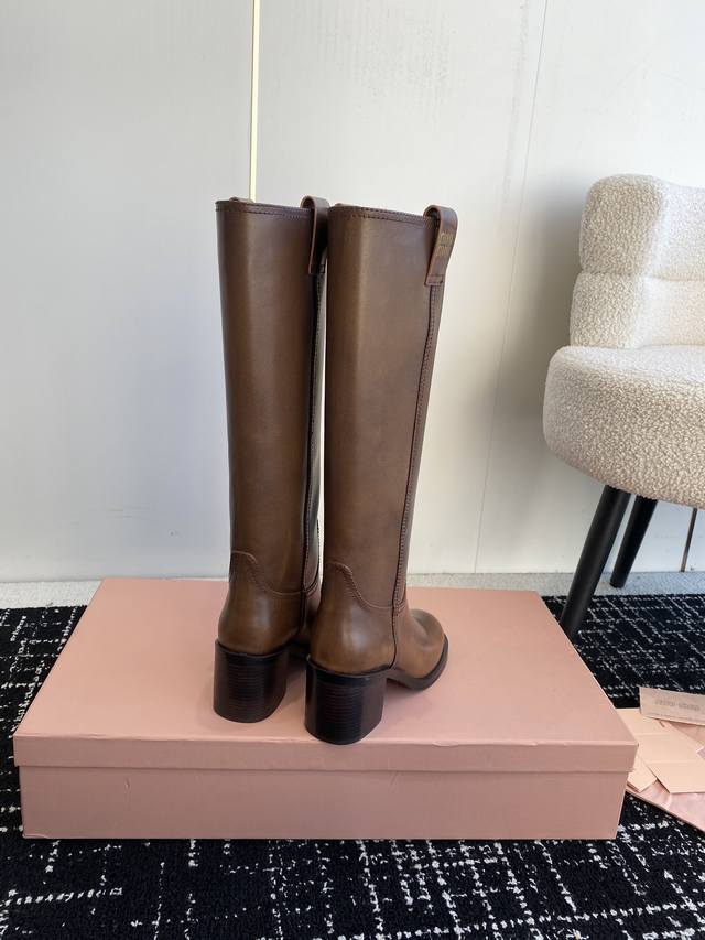 Miu Miu 双耳粗高跟套筒短靴 秋冬走秀新款短靴!