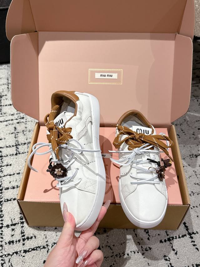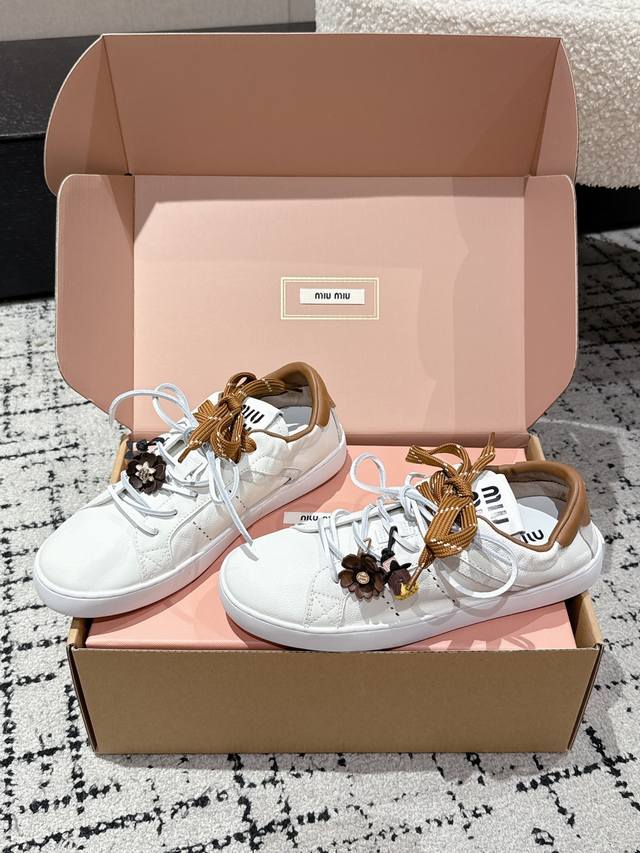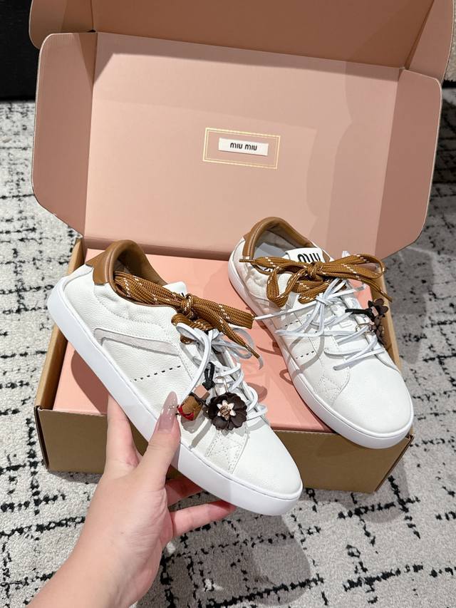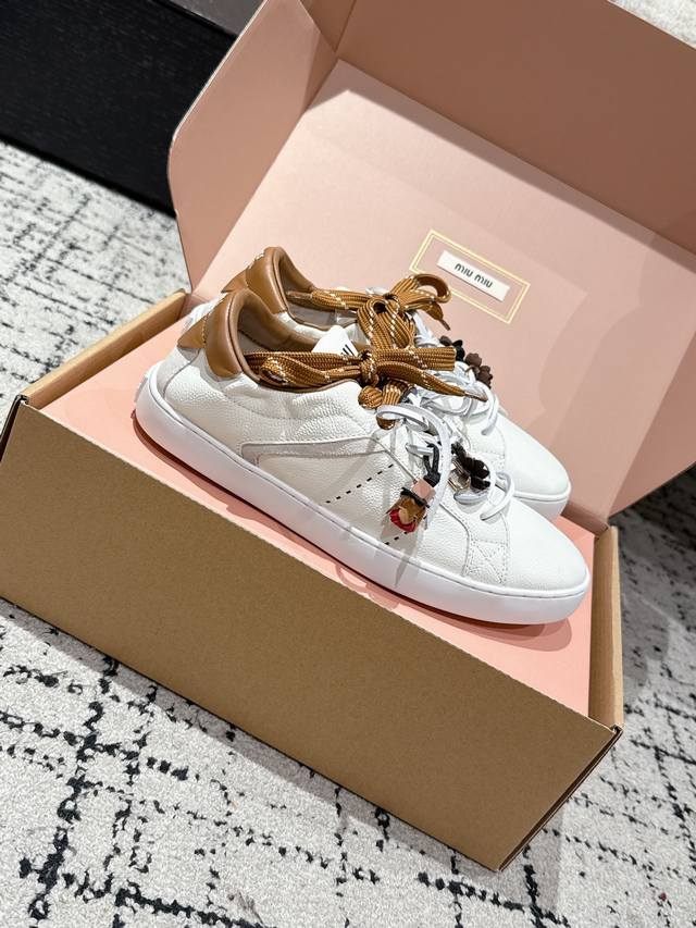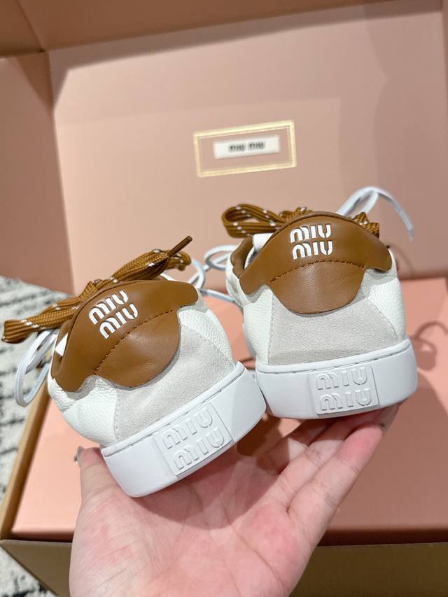 Miu Miu 缪缪 25 新款英伦风系带 小白鞋 休闲鞋