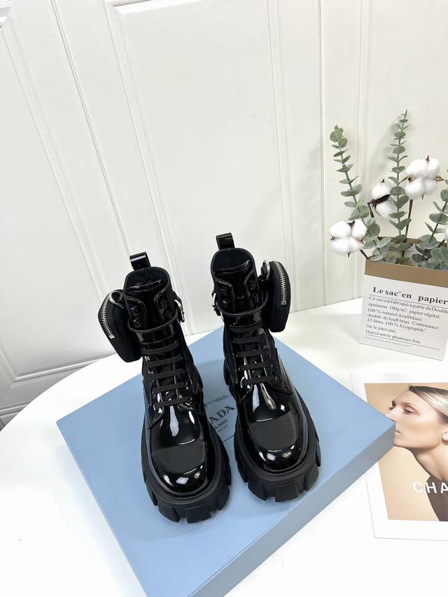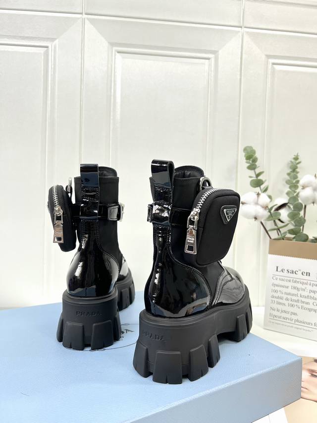 / 代购级 prad 家22Ss早春新品!经典靴型+英伦拼色设计,经典耐看!原版倒模楦型,极致1:1形体,进口高端织针呈现出精致质感! 开模定制A级大底,奢华包装!