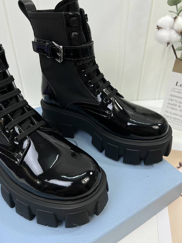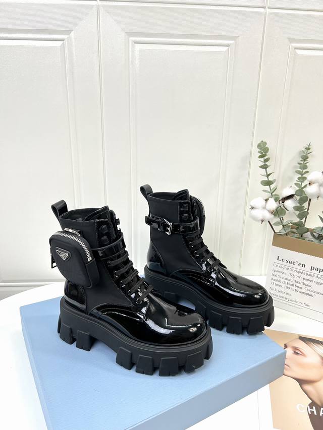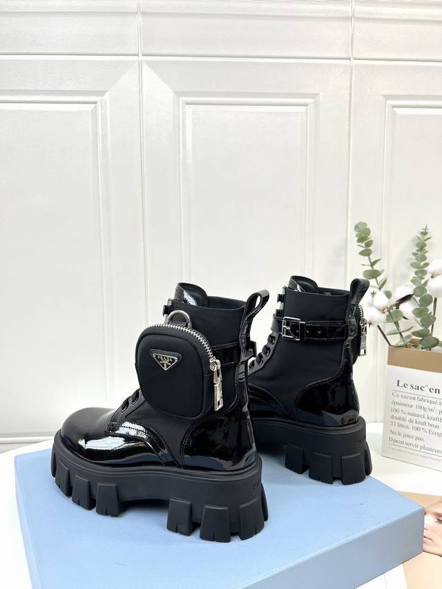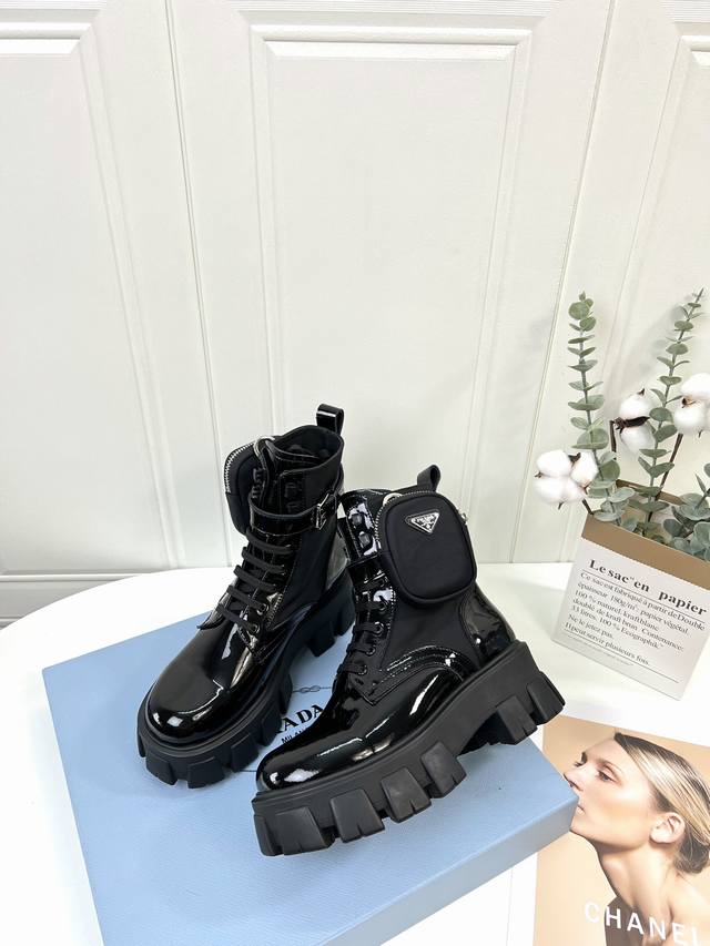 代购级 prad 家22Ss早春新品!经典靴型+英伦拼色设计,经典耐看!原版倒模楦型,极致1:1形体,进口高端织针呈现出精致质感!