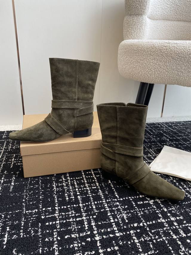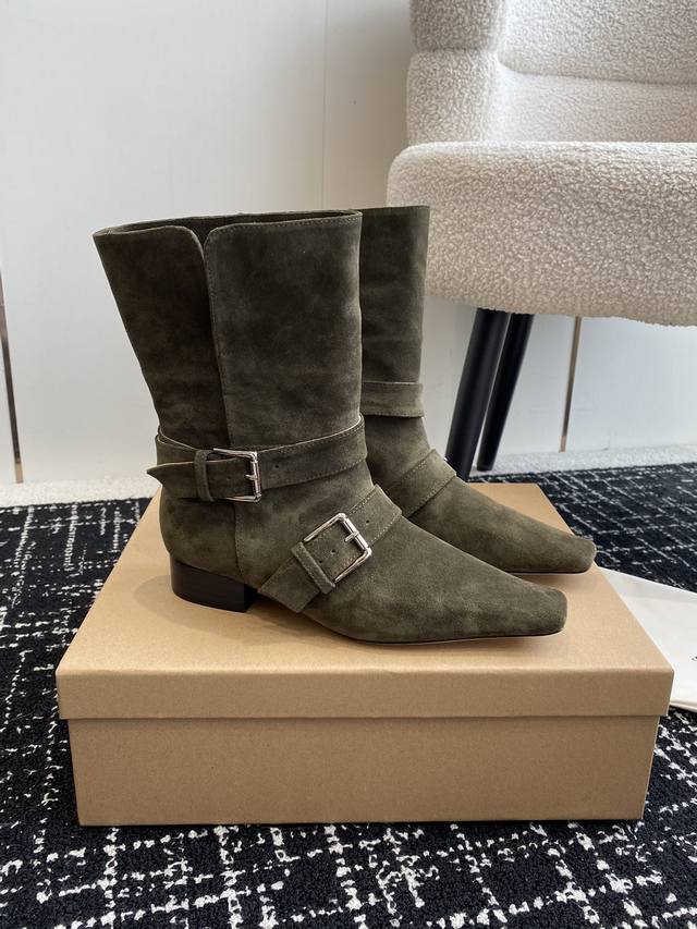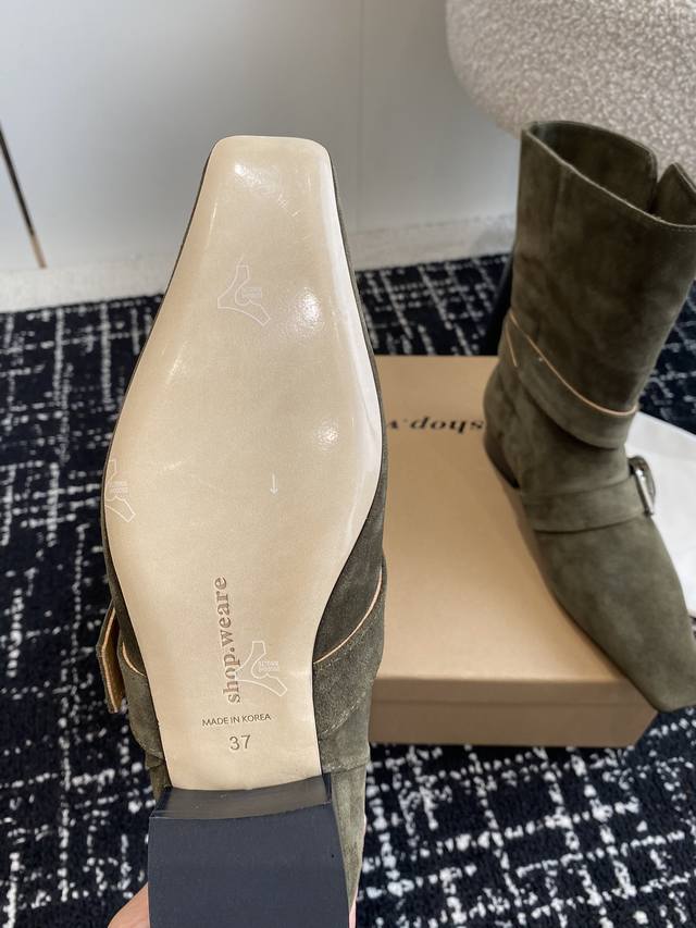 韩国小众品牌出品最新款手工制作,小方头双皮带扣短靴,这款也真的很有西部特色,感觉很适合搭配牛仔然后去骑马驰骋草原!