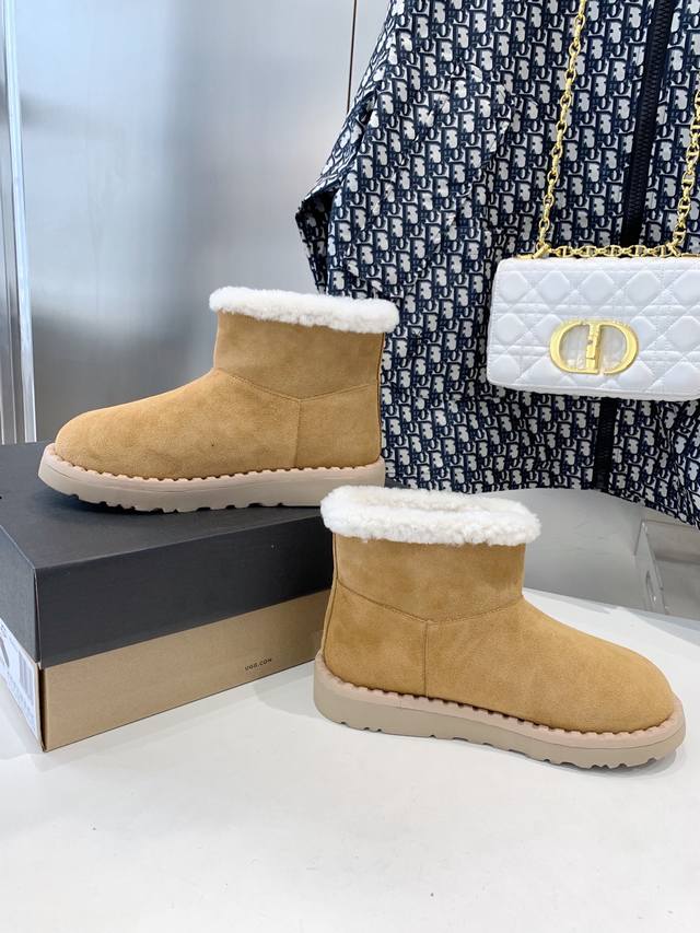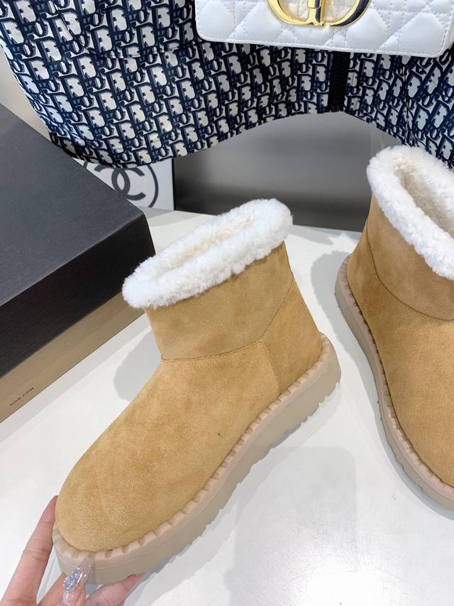 代购级 Ugg韩系秋冬美拉德丑萌小短靴,冬天一点不会显得笨重,高丝光牛皮绒面,Eva发泡双层组合大底,搭配牛子裤绝绝子三色,码数35-40