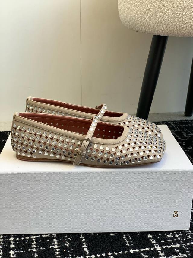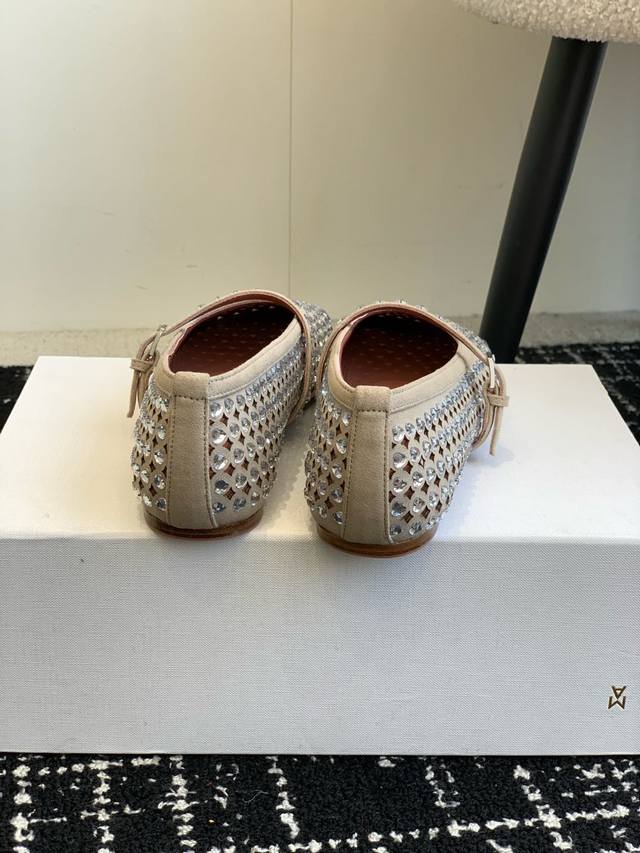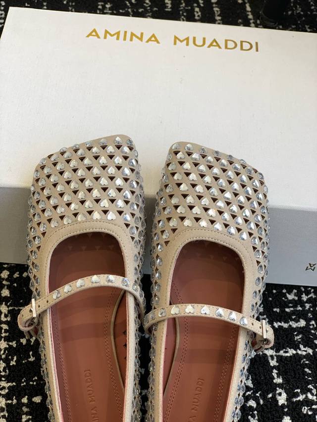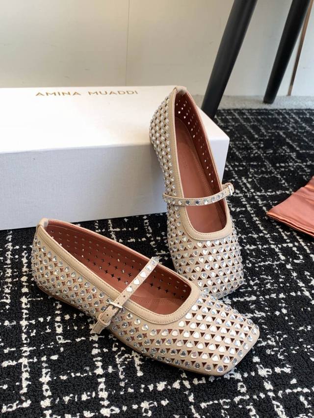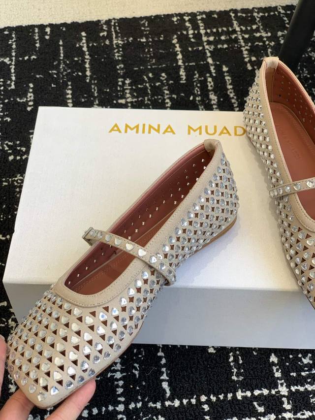 Amina Muaddi 小众潮牌 25Ss早春新款 水钻缀饰 芭蕾平底鞋