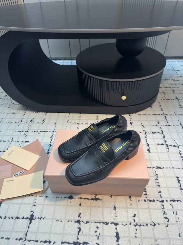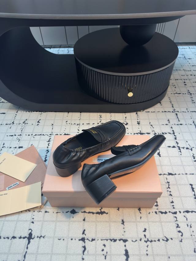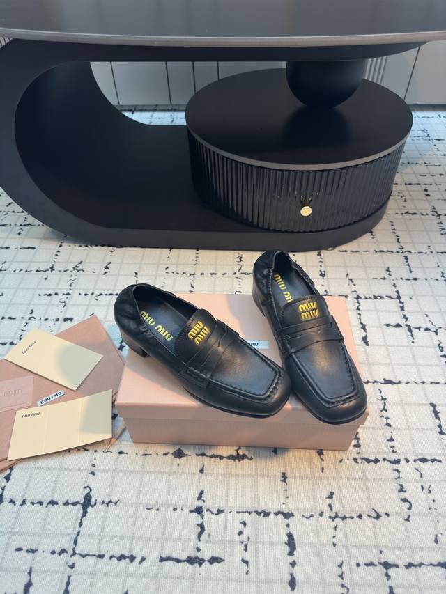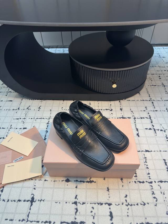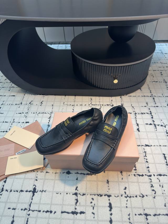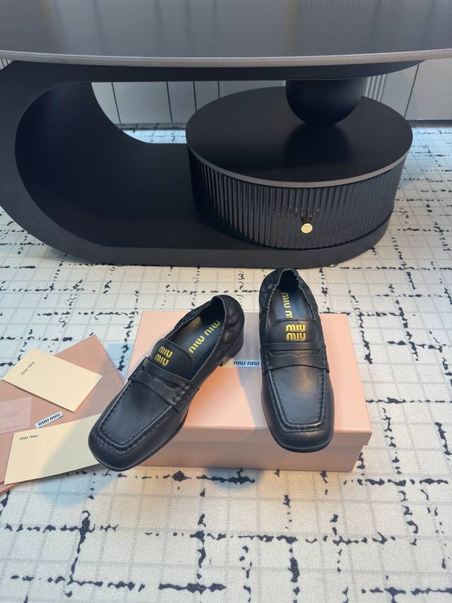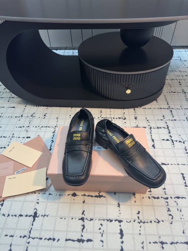 代购级miu Miu 24Ss秋冬季 布洛克方头乐福鞋