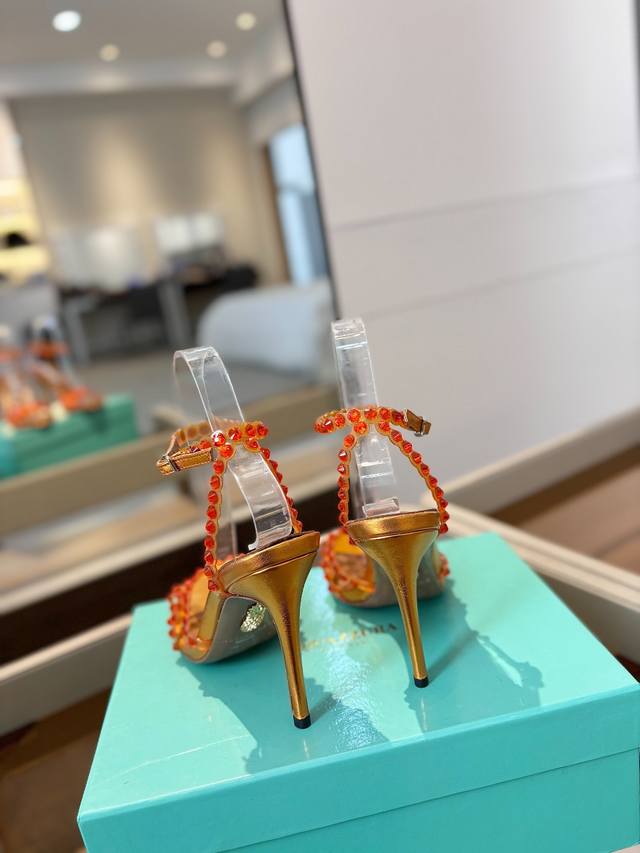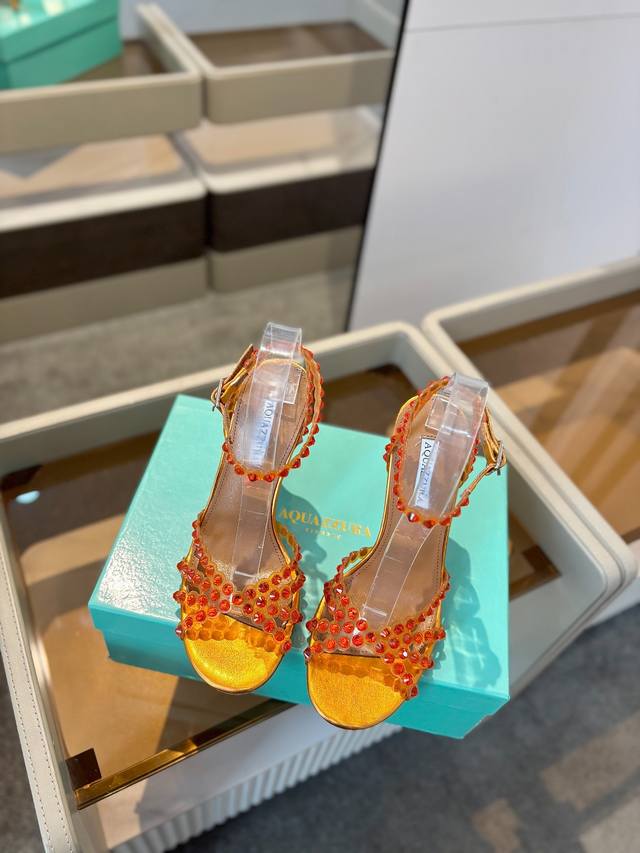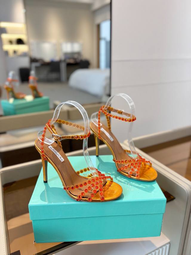 Aquazzura 菠萝 春夏新品高跟凉鞋。满满的钻,超闪 精致女人必备款太性感了吧!超级显气质的一款。