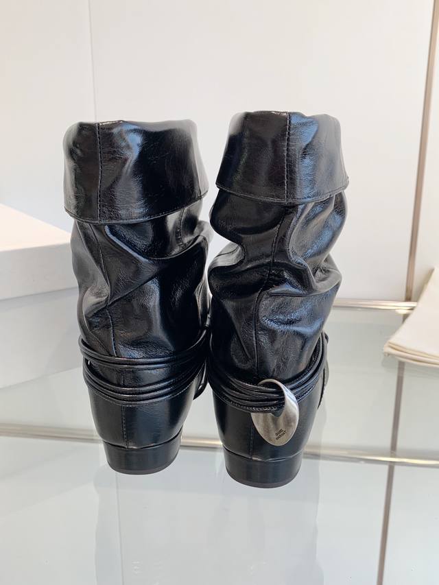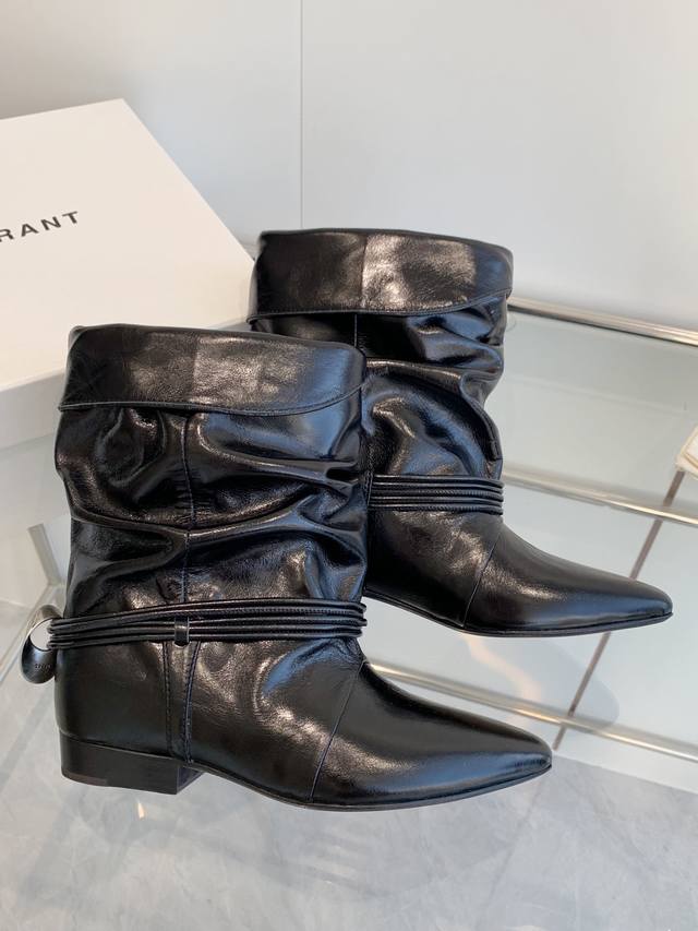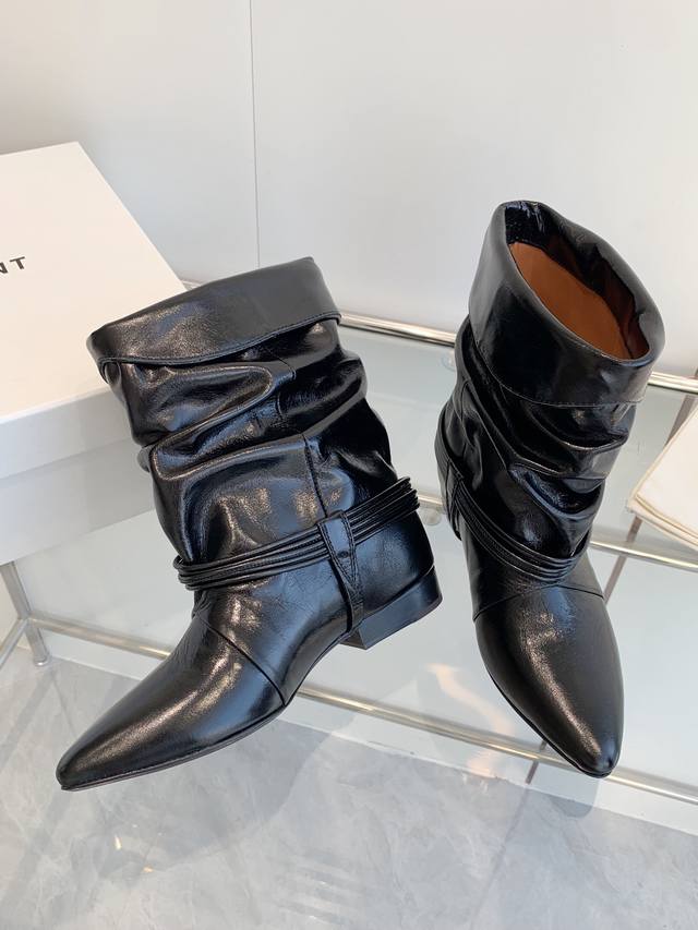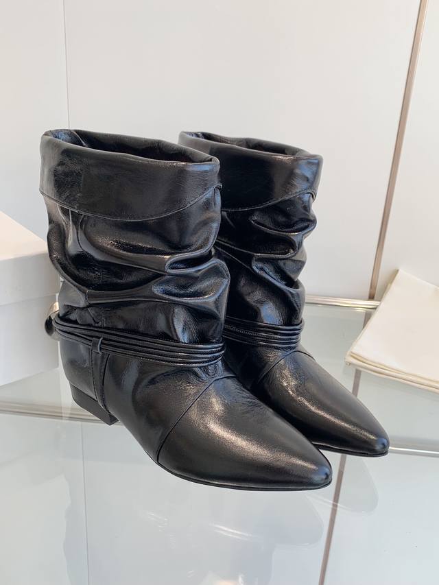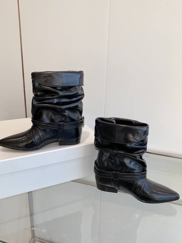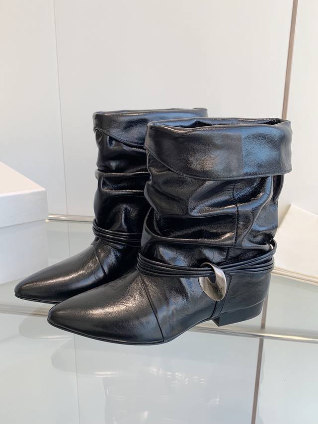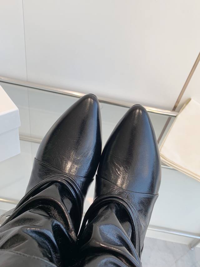 Ss24秋冬走秀款尖头西部牛仔靴中筒靴