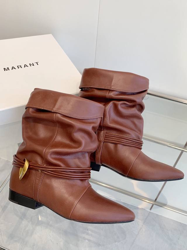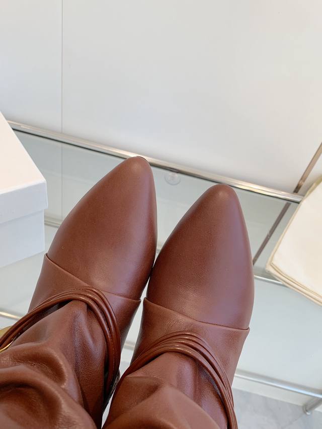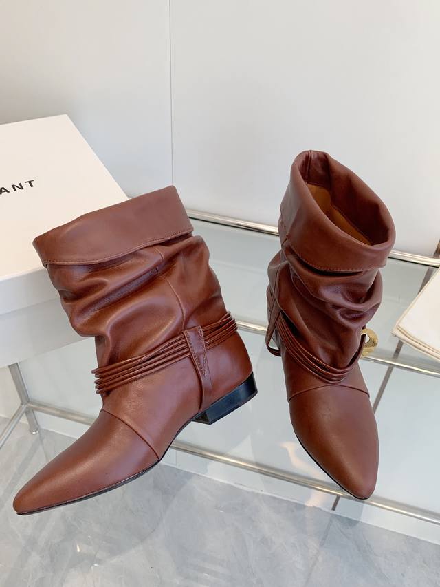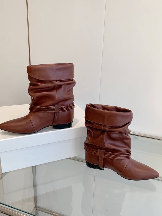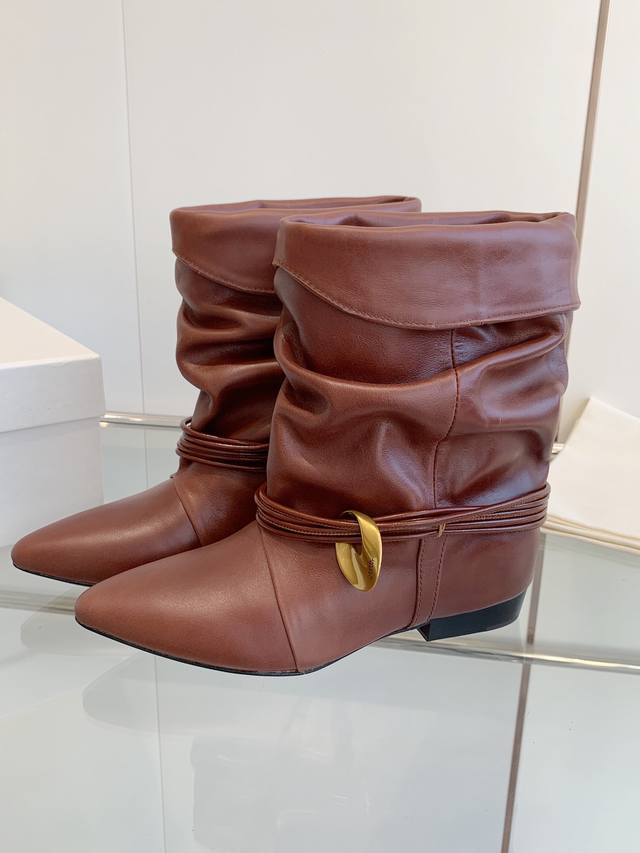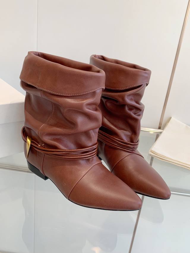 Ss24秋冬走秀款尖头西部牛仔靴中筒靴