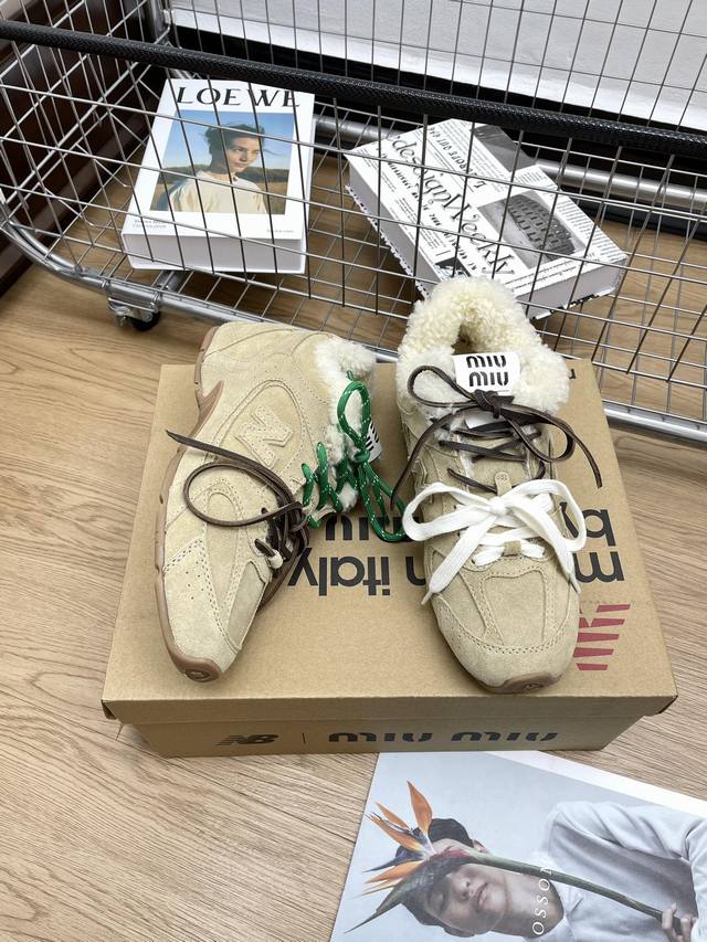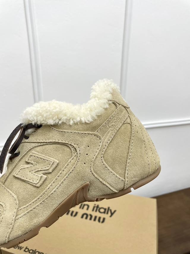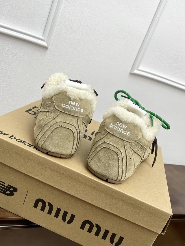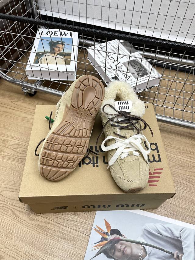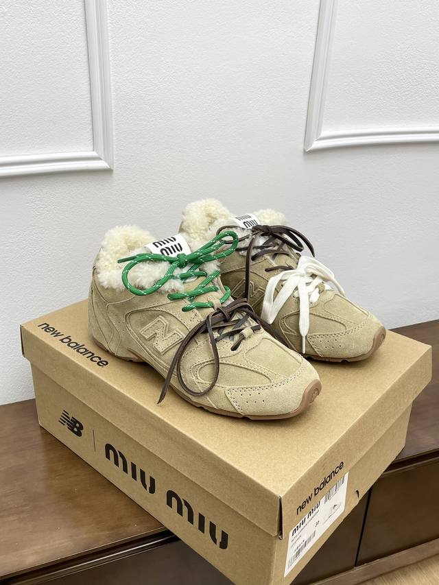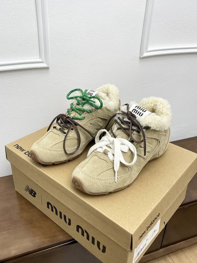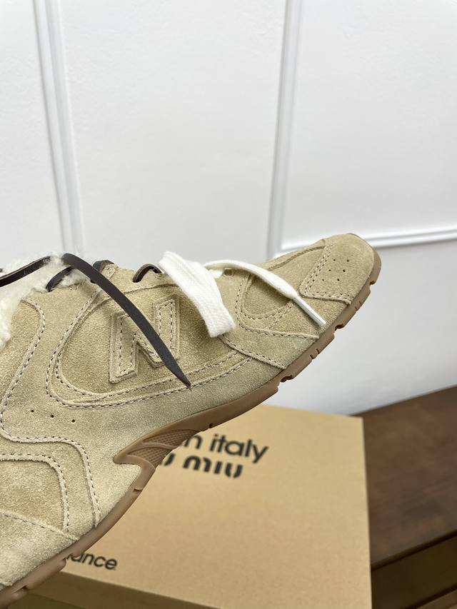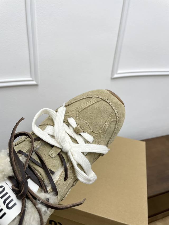 内增高版 皮里 毛里 顶级版本miumiu缪缪棉鞋毛毛鞋2024秋冬新联名款休闲运动鞋 德训鞋 Miumiu秀场适当独一无二的擦色工艺工艺来自miu Miu系列