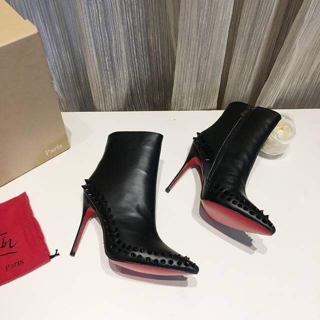 冬季时装靴转图必卖普通大底全粒面牛皮 真皮大底 品牌:法国著名品牌红底鞋christian Louboutin 克里斯提.鲁布托原版1: 1制作 性感时装靴 简单大气细跟小尖头尽显女人味让别人看到了什么是女王范儿