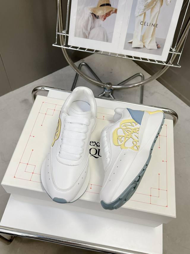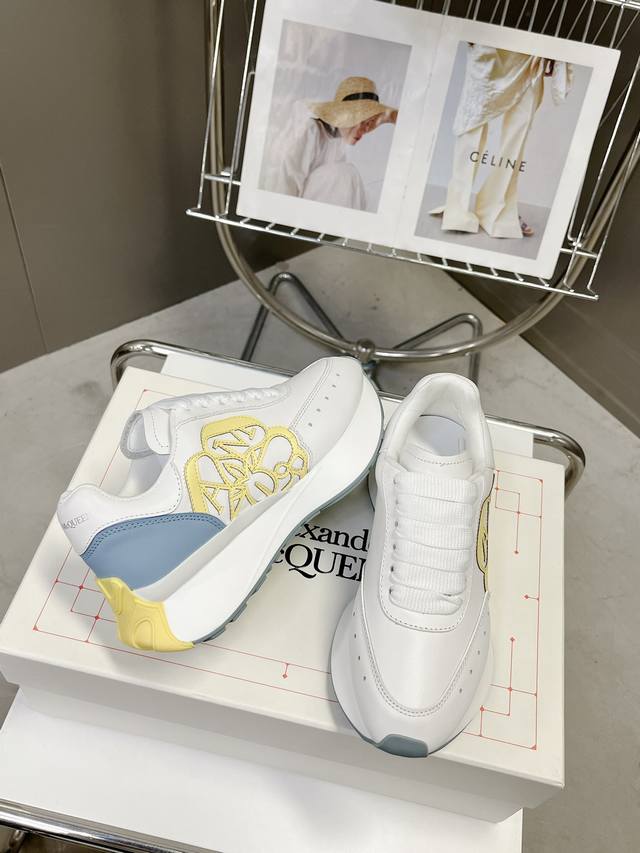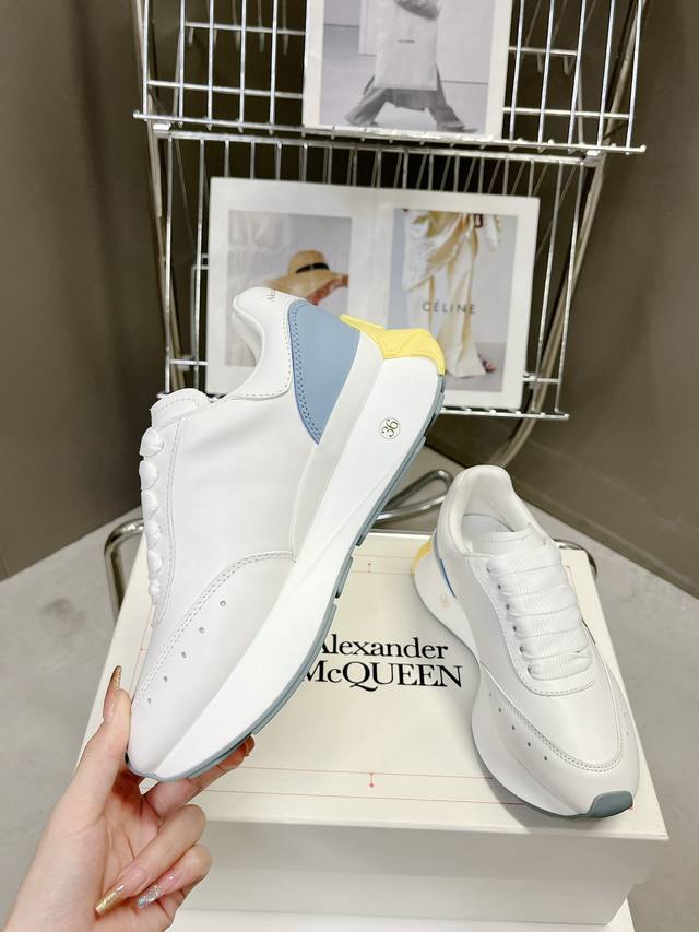 冲量价: 官网同步上新alexander Mcqueen 亚历山大麦昆 春夏男女sprint运动情侣款 鞋侧面饰有时尚个性字母seal Logo组合雕花标志 内