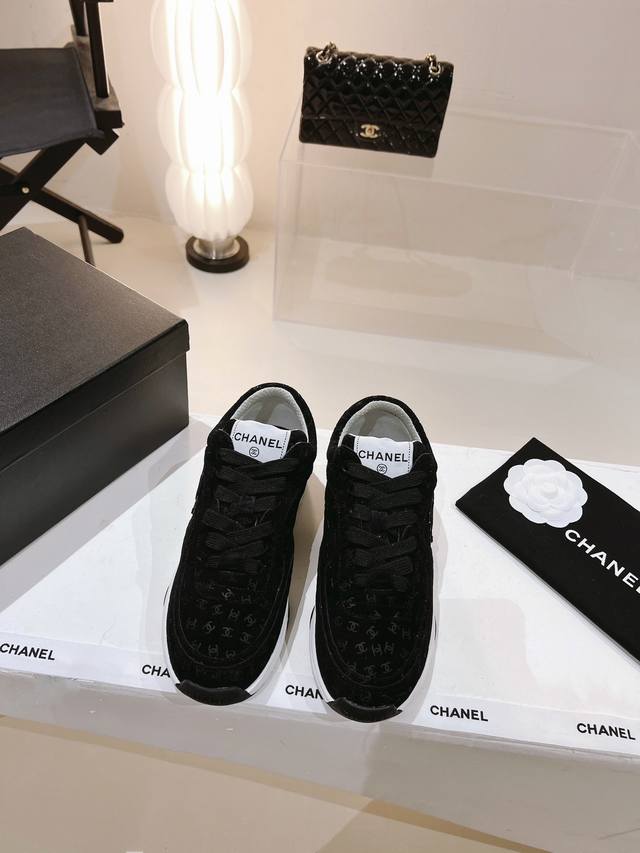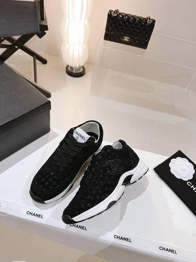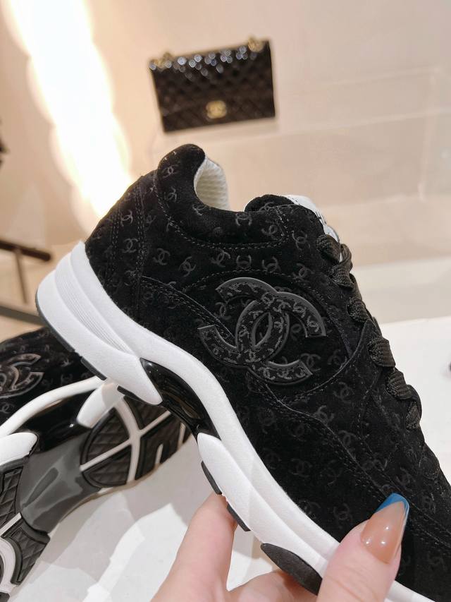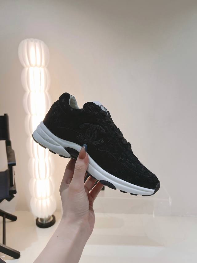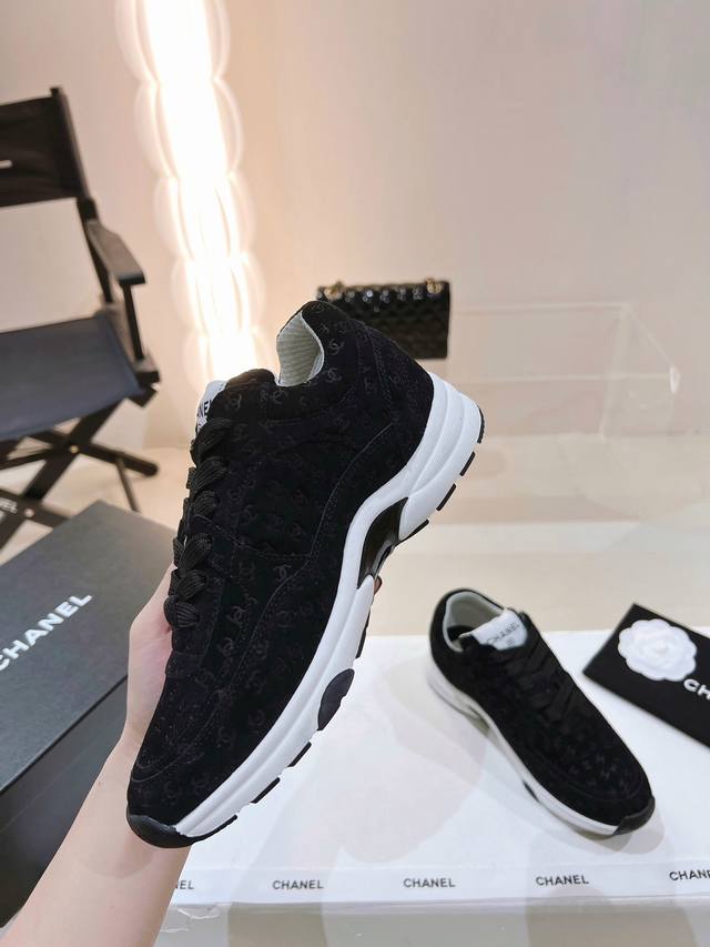 专柜顶级休闲款3D打印双c印花运动鞋鞋,黑白经典配色上立体凹凸滴胶logo 处处彰显霸气