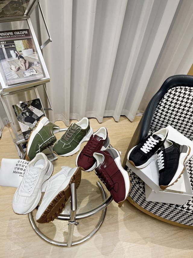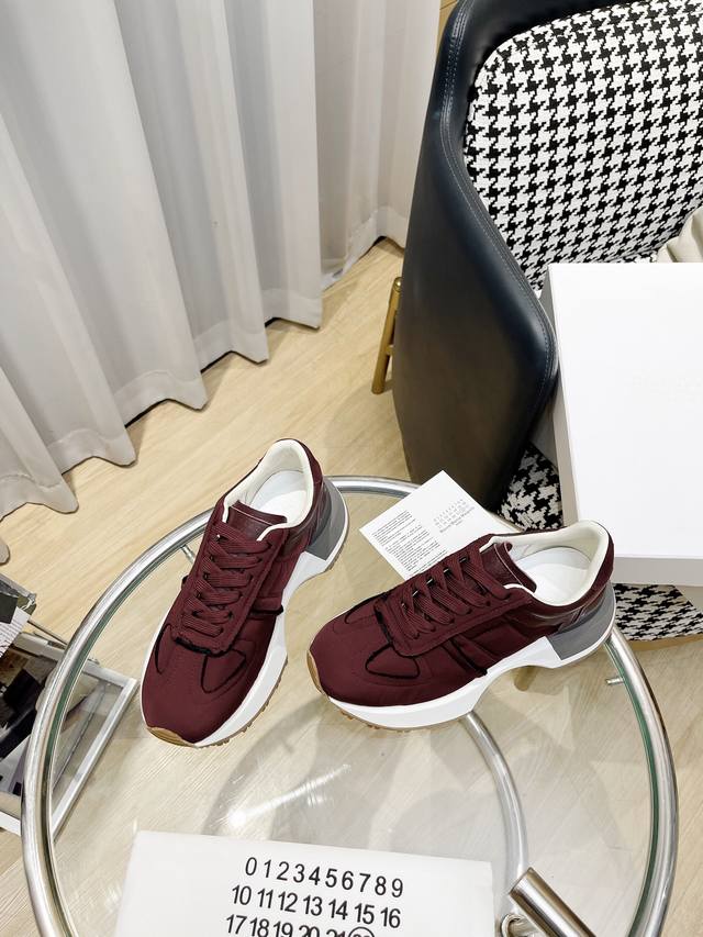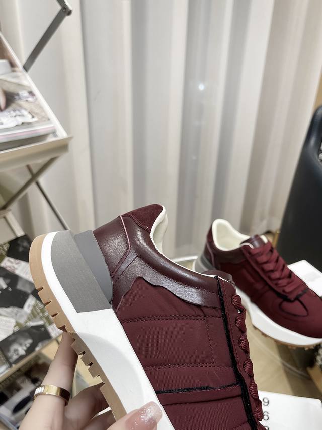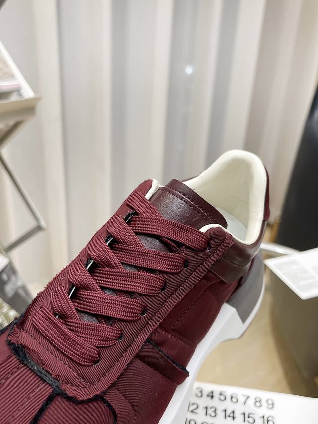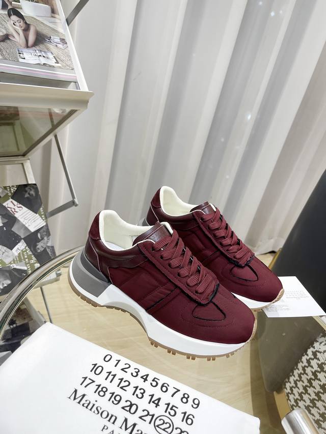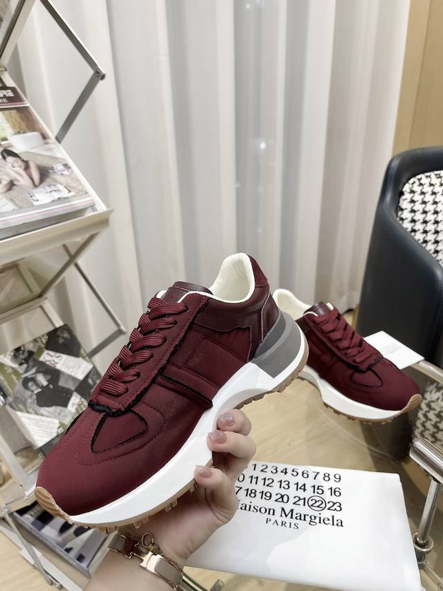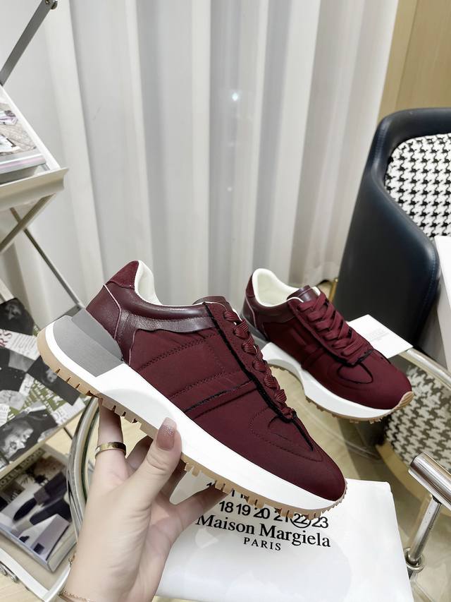 Maisonmargiela Mm6德训老爹鞋,今年最火王炸老爹鞋,采用牛皮、尼龙面料制成,鞋舌上带有品牌logo数字标志,背面带有“22”数字标志。它们采用原版组合鞋底、毛边和背面标志性的对比缝线。