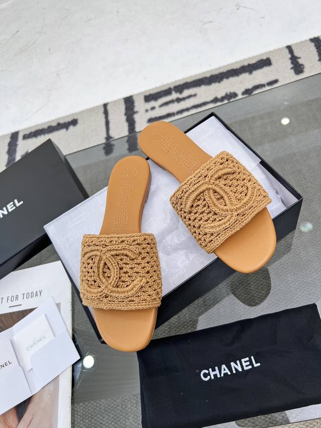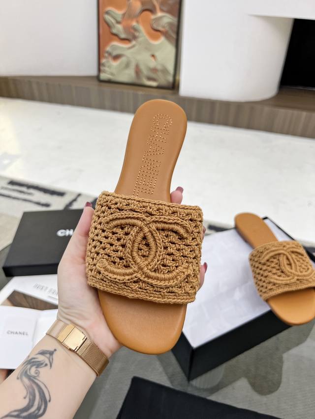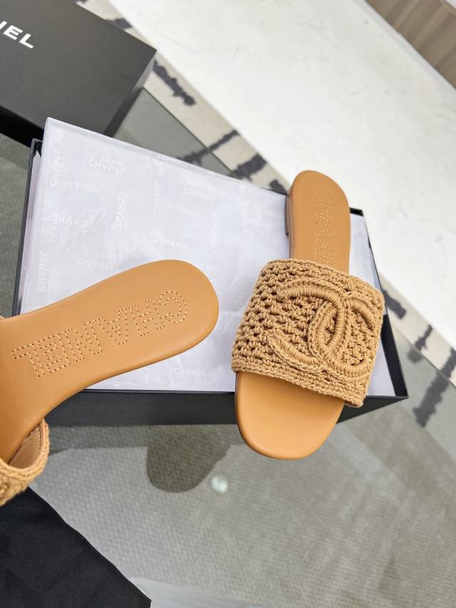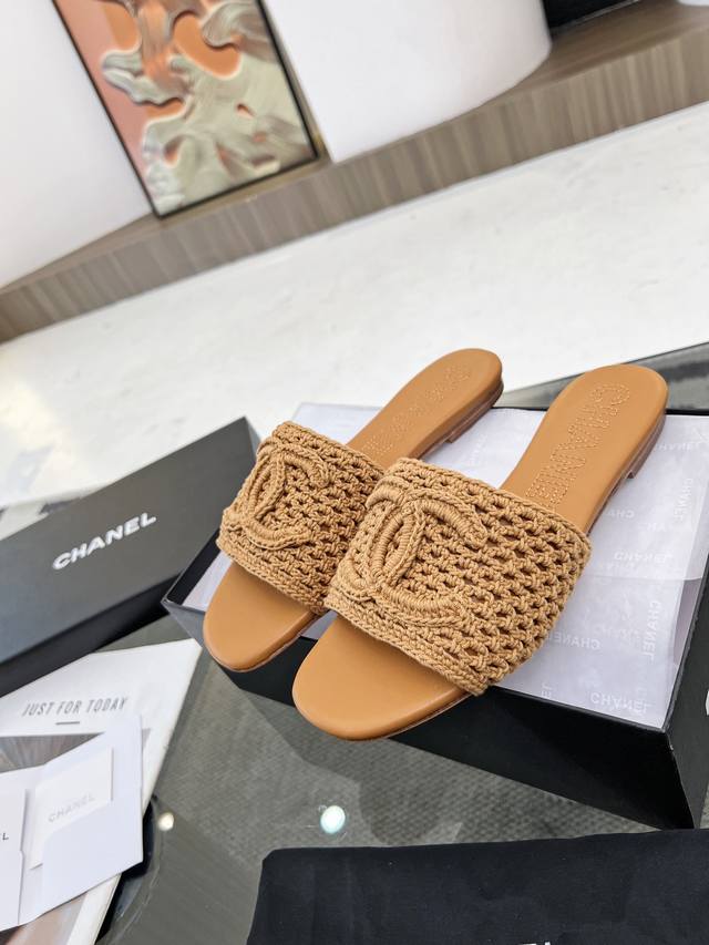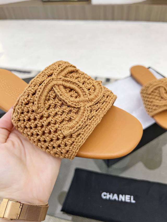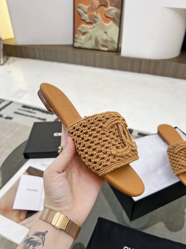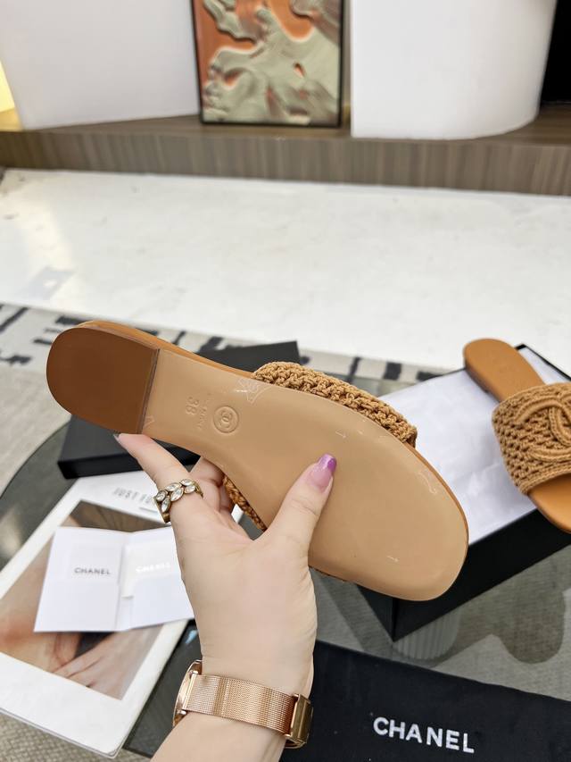 冲量价: 真皮底+40香 奈 儿 B高级手工坊系列,手工编织拖鞋35-43