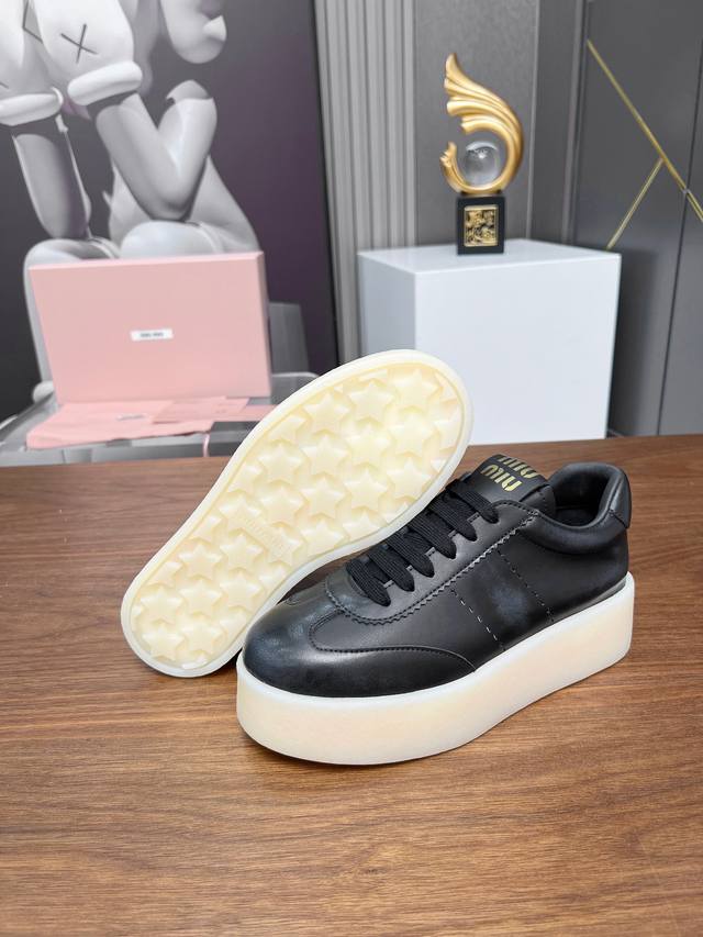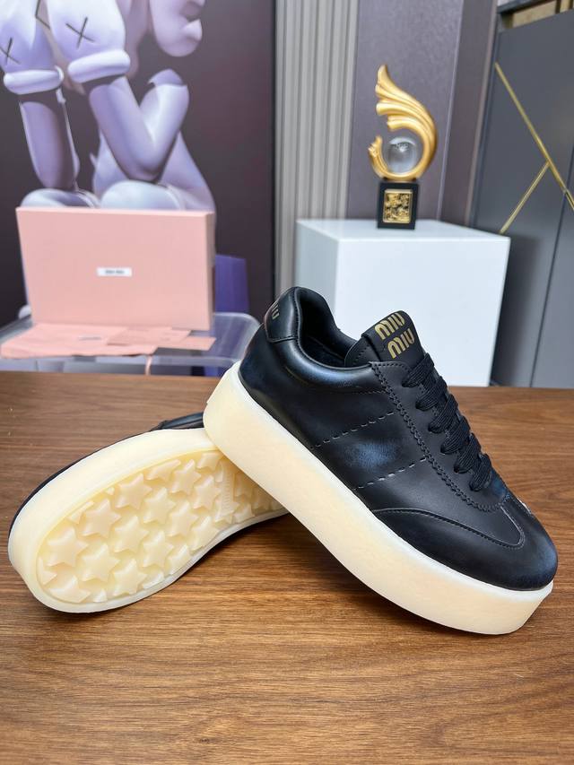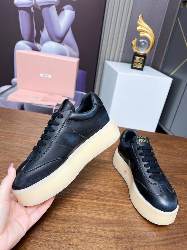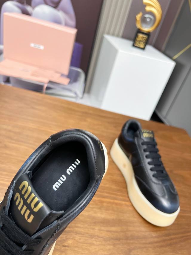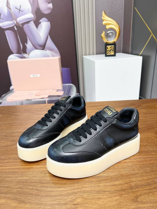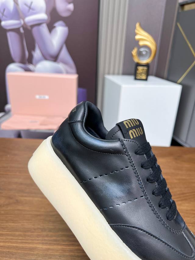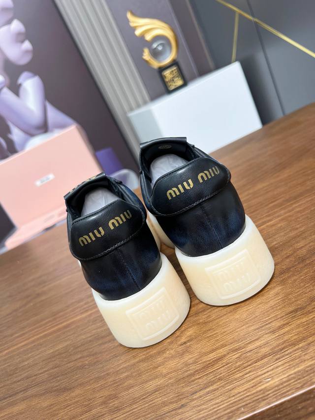 Miu Miu 缪缪2025新款休闲小白鞋,各大品牌中脱颖而出的四季鞋颜值担当火爆款脏脏鞋,不得不入的一款~做旧时尚,简约高级 随意搭配上脚非常舒适,年度必入款!