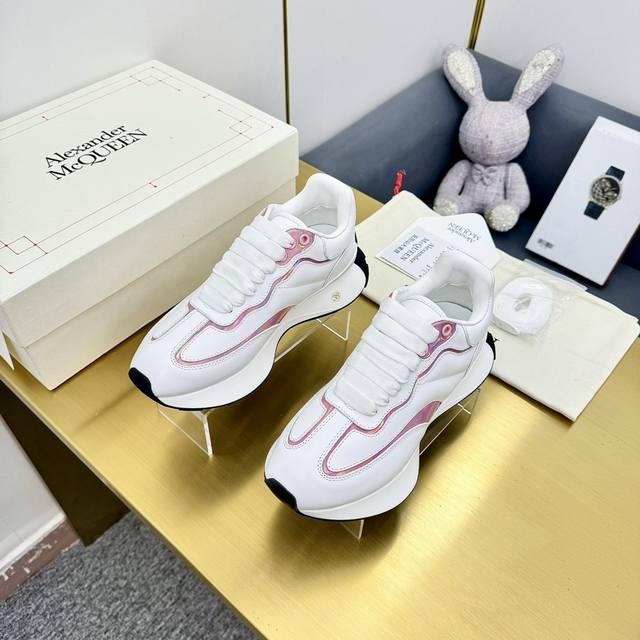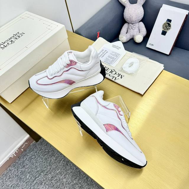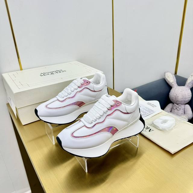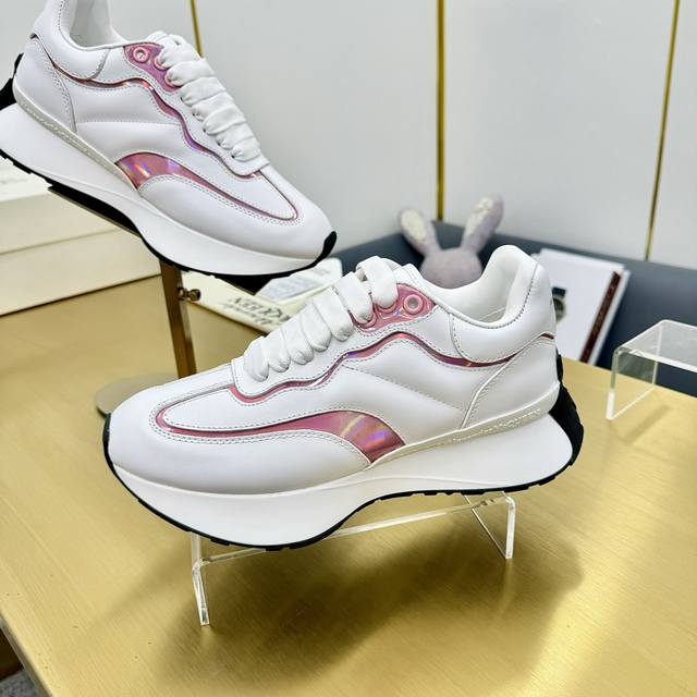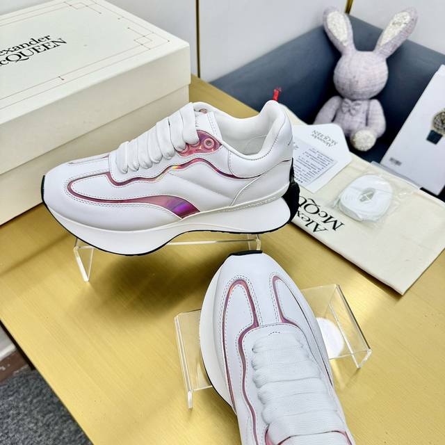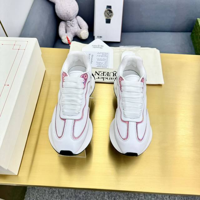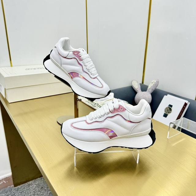 Alexander Mcqueen的lugo标志后跟和鞋舌头与亚历山大麦昆签名 运动鞋采用了超大的跑步者鞋底,跑步起脚舒适方便